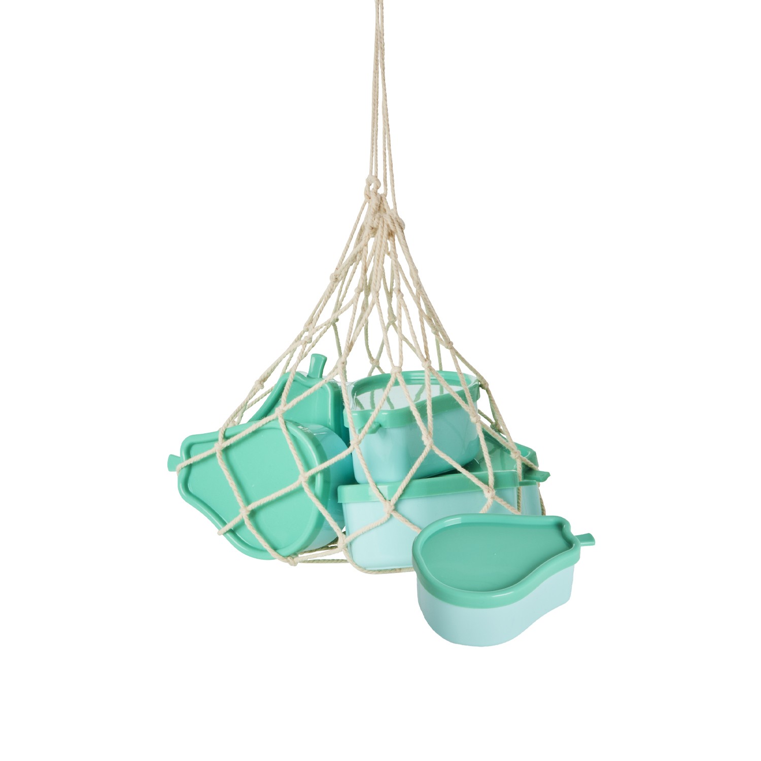 Contenitori porta pranzo di plastica azzurri a forma di pera, dotati di un pratico coperchio verde, adatti ad ogni esigenza, anche come porta merenda per i più piccini. 6 pezzi dentro ad ogni rete. La nostra plastica è di alta qualità, riutilizzabile e priva di bisfenolo e ftalati.