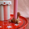 Realizzato in ceramica lucida con dettagli dipinti che ricordano la glassa, questo portacandele è un elemento decorativo unico, ideale per candele lunghe e sottili, aggiunge altezza e un punto focale giocoso a qualsiasi composizione. Si abbina splendidamente ai colori classici del Natale (rosso e verde), ma è fantastico anche con le palette più moderne, rendendolo un pezzo versatile.
