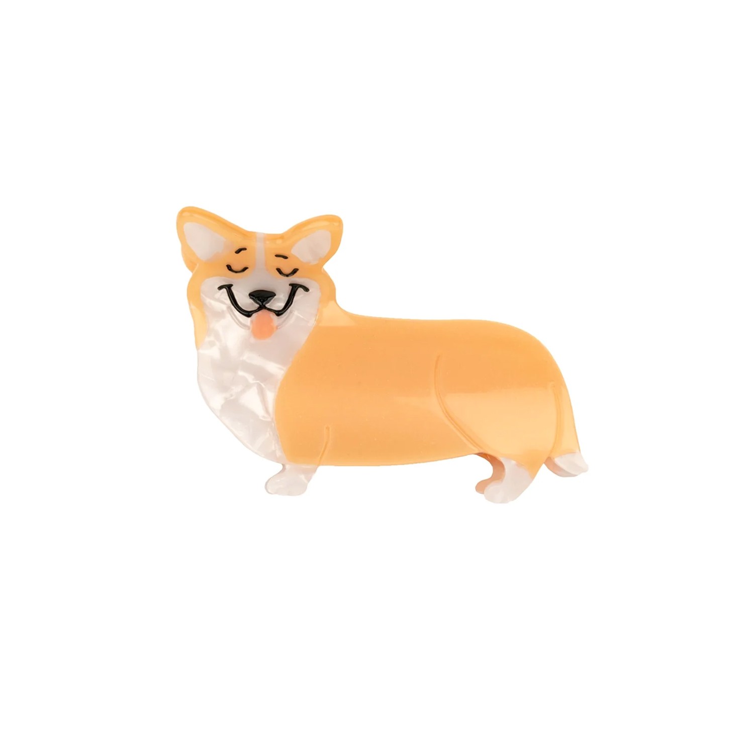 Per gli amanti dei nostri amici a quattro zampe, questo fermaglio per capelli a forma di corgi, realizzato in acrilico madreperlato con denti in acetato, farà decisamente al caso loro, aggiungendo un simpatico tocco di colore al look.