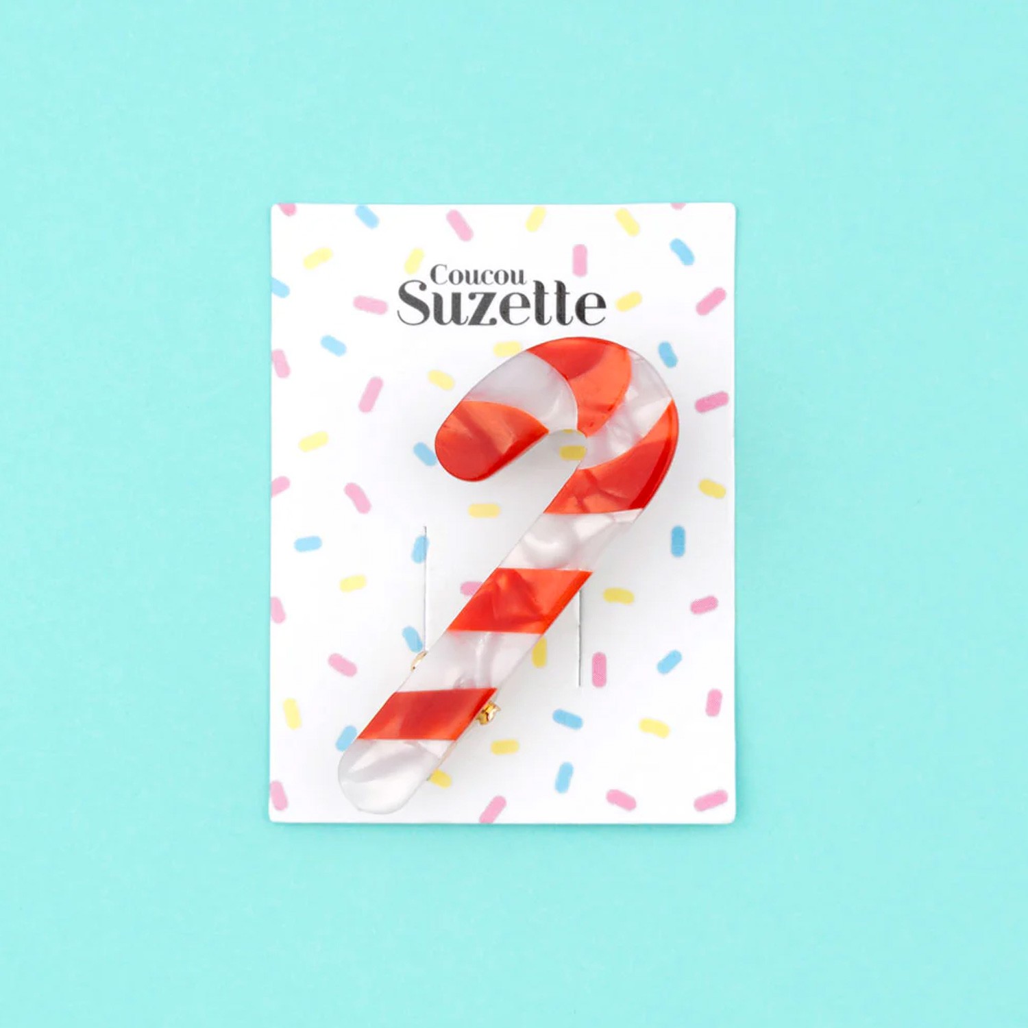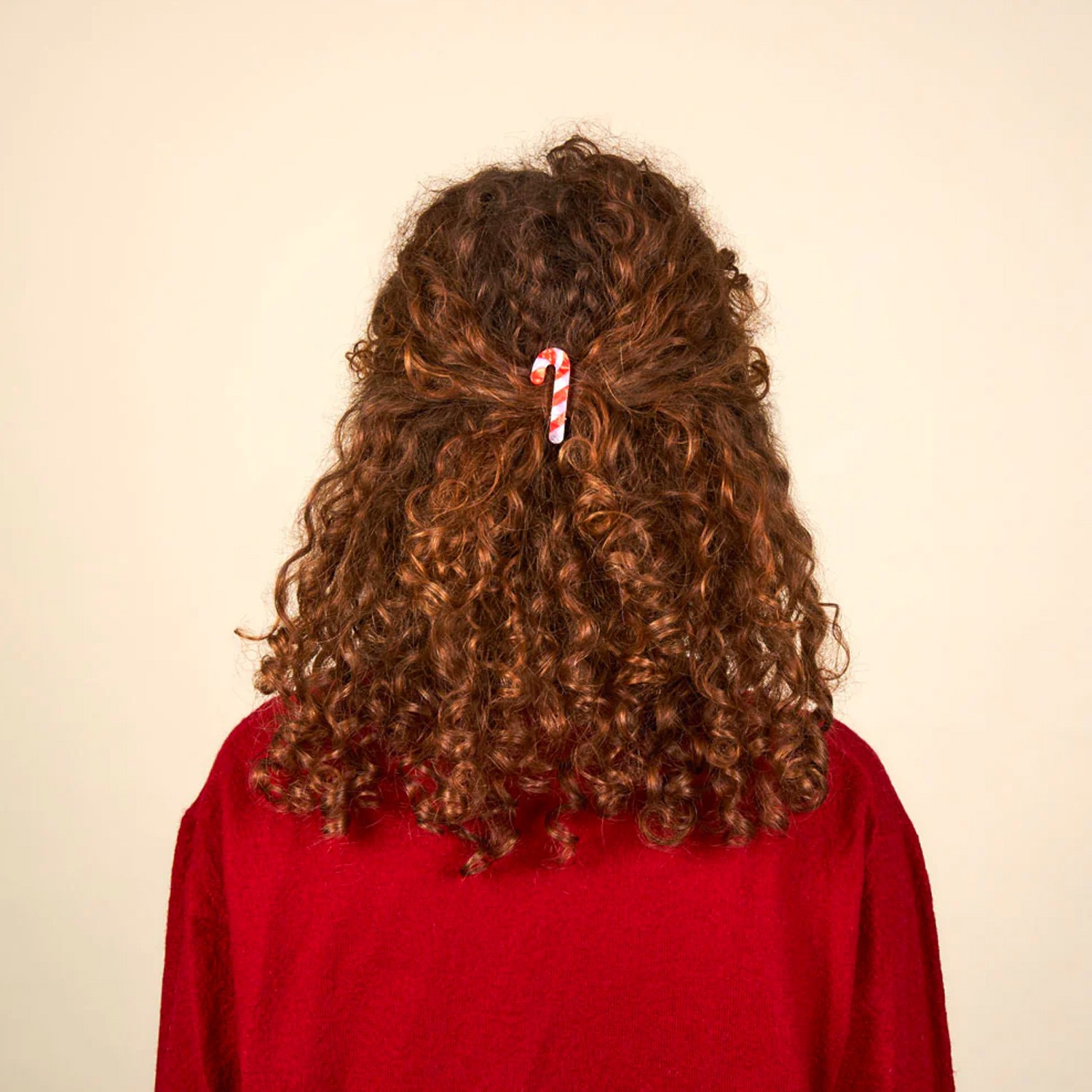 Aggiungi un tocco festivo al tuo look con questa graziosa e piccola molletta per capelli a forma di candy cane, realizzata in acrilico madreperlato con clip dorata. Adoriamo i suoi bellissimi colori rosso e bianco perlati e la sua forma familiare che ci riporta direttamente all'infanzia. Disponibile anche nella versione fermaglio più grande.