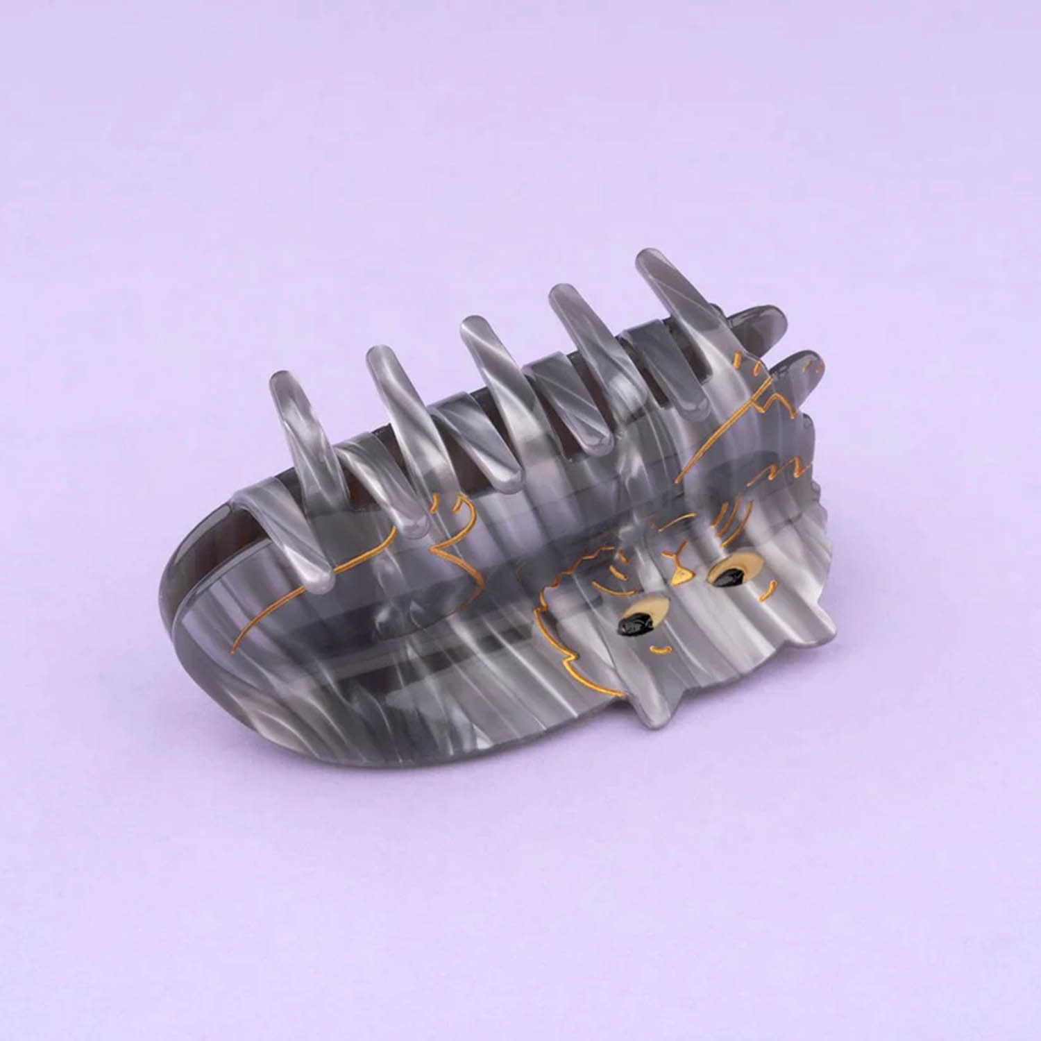 L'amata gattina di Juliette (la creatrice del marchio), che ha dato il nome al brand: Suzette! E sì, dietro a questo delizioso nome si nasconde un persiano grigio a cui era giunto il momento di rendere omaggio! Abbiamo scelto un grazioso grigio cangiante per questo fermaglio per capelli, che imita perfettamente il pelo morbido e setoso di questo splendido felino. Lunga vita a Suzette! Realizzato in acrilico madreperlato con denti in metallo e dettagli dorati dipinti a mano, è un’idea regalo davvero unica e originale per gli amanti dei nostri amici felini, perfetta anche da inserire in un calendario dell'Avvento o per un Secret Santa. Si consiglia di evitare il contatto con l’acqua.