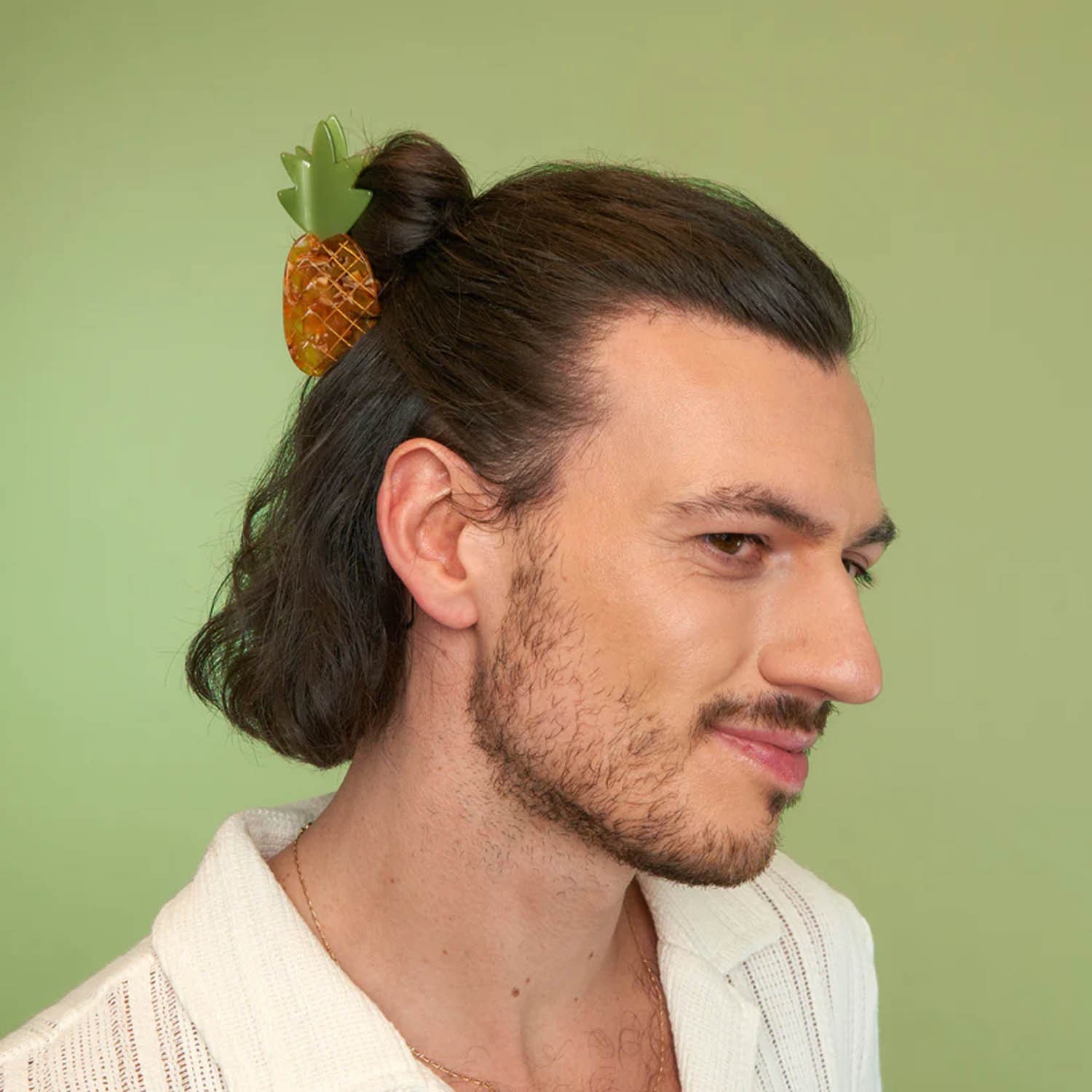 Gustoso, croccante e ricco di vitamine... Sì, stiamo parlando del nostro bellissimo fermaglio per capelli a forma di ananas by Coucou Suzette! Un frutto esotico semplice ed efficace per ravvivare i nostri chignon alti, un po' troppo modesti per i nostri gusti. Realizzato in acetato di cellulosa con dettagli dorati dipinti a mano, è un’idea regalo davvero unica e originale, perfetta anche da inserire in un calendario dell'Avvento o per un Secret Santa. Si consiglia di evitare il contatto con l’acqua.