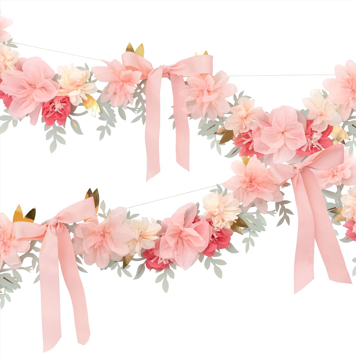 Una collaborazione con Laduree, lo specialista francese della ristorazione e dei macaron, per creare questo bellissimo festone di carta floreale per deliziare i tuoi ospiti. È realizzato in 3 sezioni per un facile montaggio. Nastri in grosgrain a righe pesca/avorio per realizzare i fiocchi. Fiori in carta velina nelle tonalità del rosa preassemblati. Cordoncino dorato per appendere la ghirlanda ovunque tu voglia. È richiesto un semplice assemblaggio per questo festone fai da te ideale per compleanni, baby shower o celebrazioni come matrimoni e comunioni.