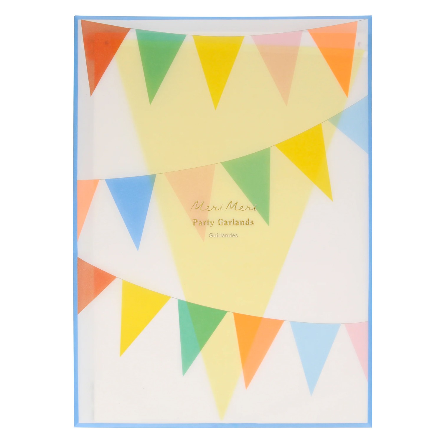 Confezione in busta semitrasparente di 2 ghirlande ciascuna composta da 10 bandierine di carta velina