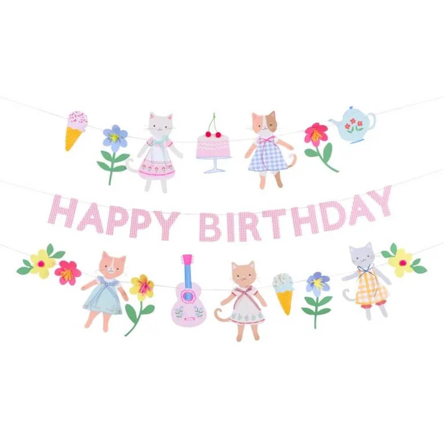 Lasciatevi conquistare dal fascino raffinato dello stile folk con il nostro festone a tema gatto. Il set comprende tre festoni di carta finemente realizzati, da esporre insieme per un effetto scenografico o singolarmente per decorare la stanza della festa. Due festoni raffigurano una sfilata di adorabili gatti con baffi di corda, vestiti con graziosi abiti in stile folk impreziositi da fiocchi di nastro, fiori con dettagli 3D e tanti altri motivi divertenti. Il festone rosa con la scritta "Buon compleanno" è un modo elegante per far sapere a tutti che è un giorno speciale. Ricchi di colore e personalità, renderanno ogni compleanno meravigliosamente speciale. Da utilizzare anno dopo anno per un'atmosfera di gioia immediata. Un set di 3 festoni di carta, da appendere insieme o separatamente. Il festone 1 raffigura 2 simpatici gattini con baffi in cordoncino avorio e nastrini rosa acceso e menta, una teiera, un gelato, 2 fiori con dettagli centrali in carta crespa e una torta con una ciliegina sulla torta e un gambo in cordoncino verde. Il festone 2 è una scritta "Buon compleanno" con un motivo a quadretti rosa e bianchi. Il festone 3 raffigura 3 simpatici gattini con baffi in cordoncino avorio e nastrini a quadretti rosa e bianchi, a quadretti blu e bianchi e blu; 2 fiori con dettagli centrali in carta crespa; 2 fiori con centro a pompon fluo; un gelato e una chitarra con dettagli rosa fluo. Cordini rosa per appenderli con stile.