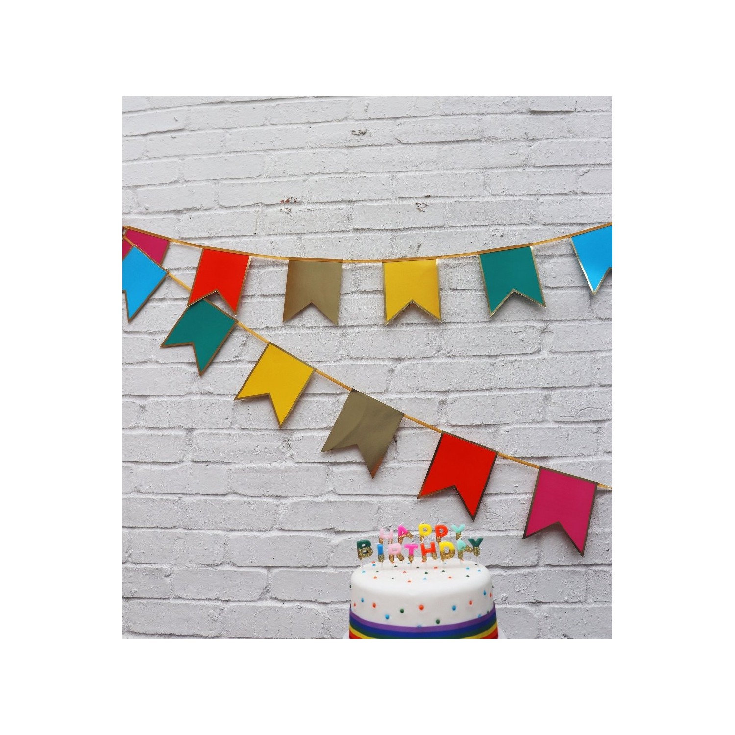 Porta un tocco di colore in ogni stanza con questo festone di compleanno ispirato all'arcobaleno! Caratterizzato da dettagli in lamina dorata, questo festone di carta con bandierine colorate è perfetto per tutte le tipologie di party.