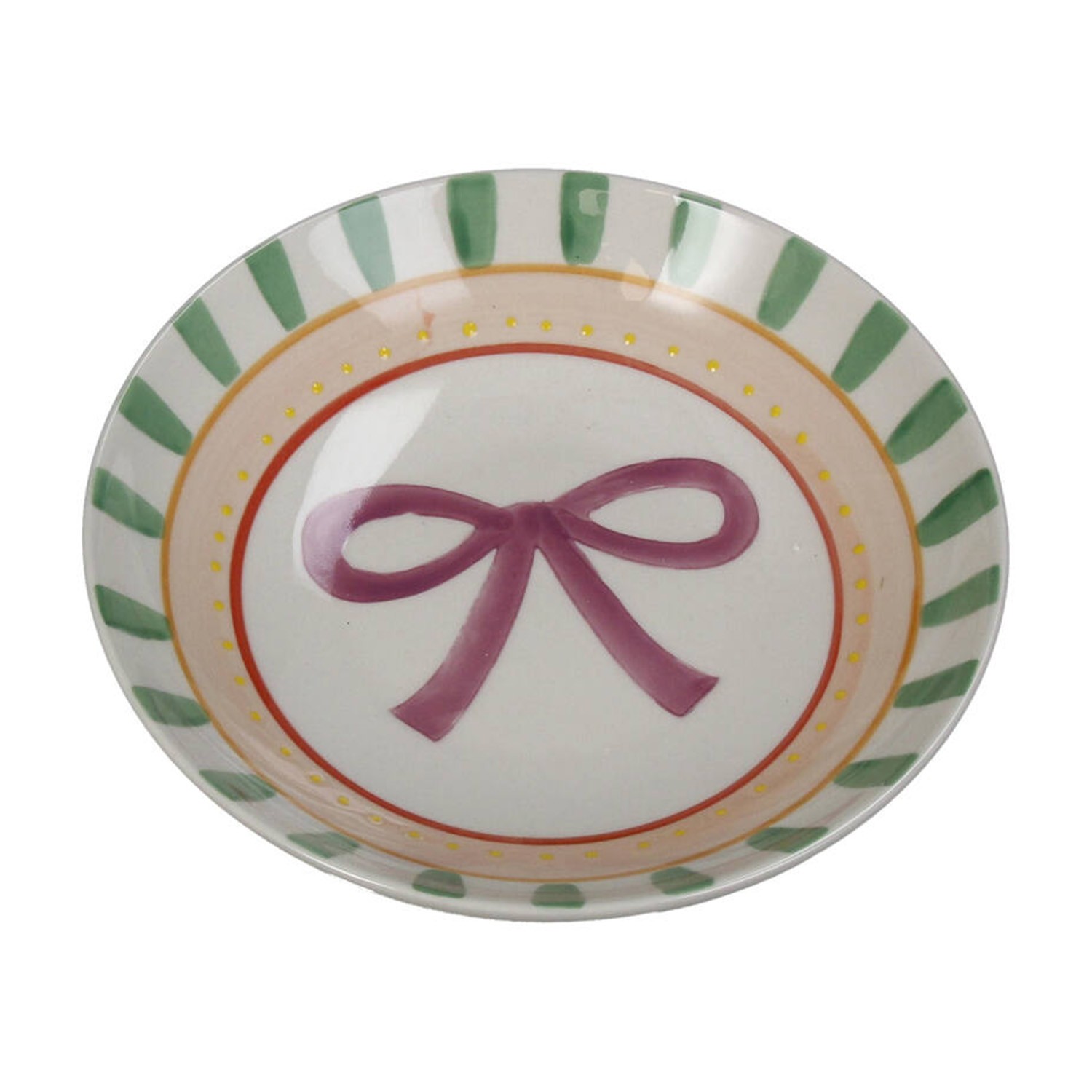 Rendi speciale la tua tavola con questa ciotola in gres porcellanato, il suo design vivace e raffinato, con il fiocco e le righe colorate, lo rende un pezzo unico e divertente. Robusto e pratico, è pronto a rendere ogni tuo pasto o aperitivo più speciale. Ideale anche come piccolo porta oggetti.