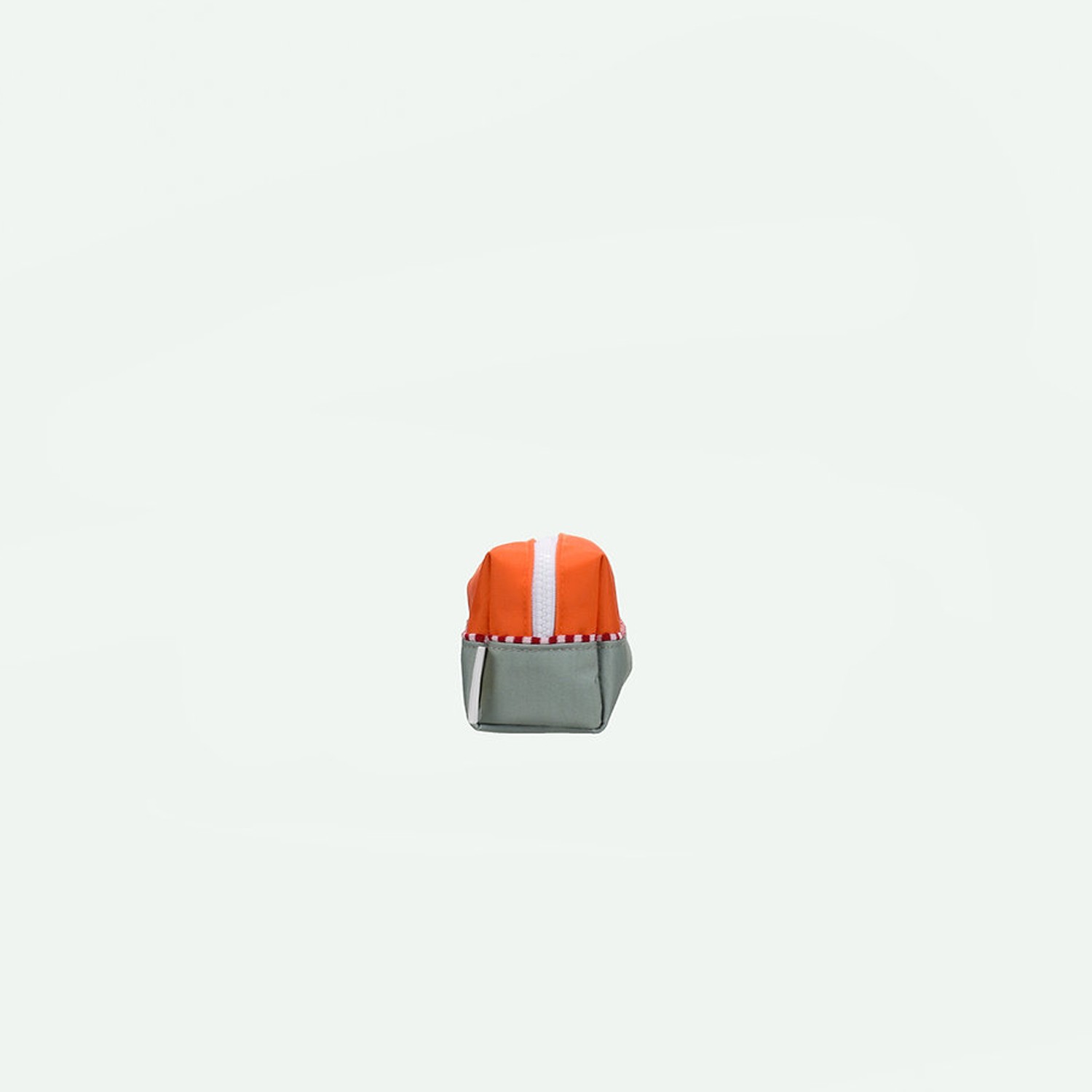 Astuccio bicolor arancione e grigio realizzato con bottiglie riciclate e perfetto come astuccio per la scuola dei più piccoli, ma anche come beauty case. L'interno ha una fodera impermeabile, mentre il cinturino laterale beige lo rende molto facile e pratico da trasportare in giro. Dotato di chiusura con cerniera YKK. Perfetto da abbinare agli zaini della stessa linea.