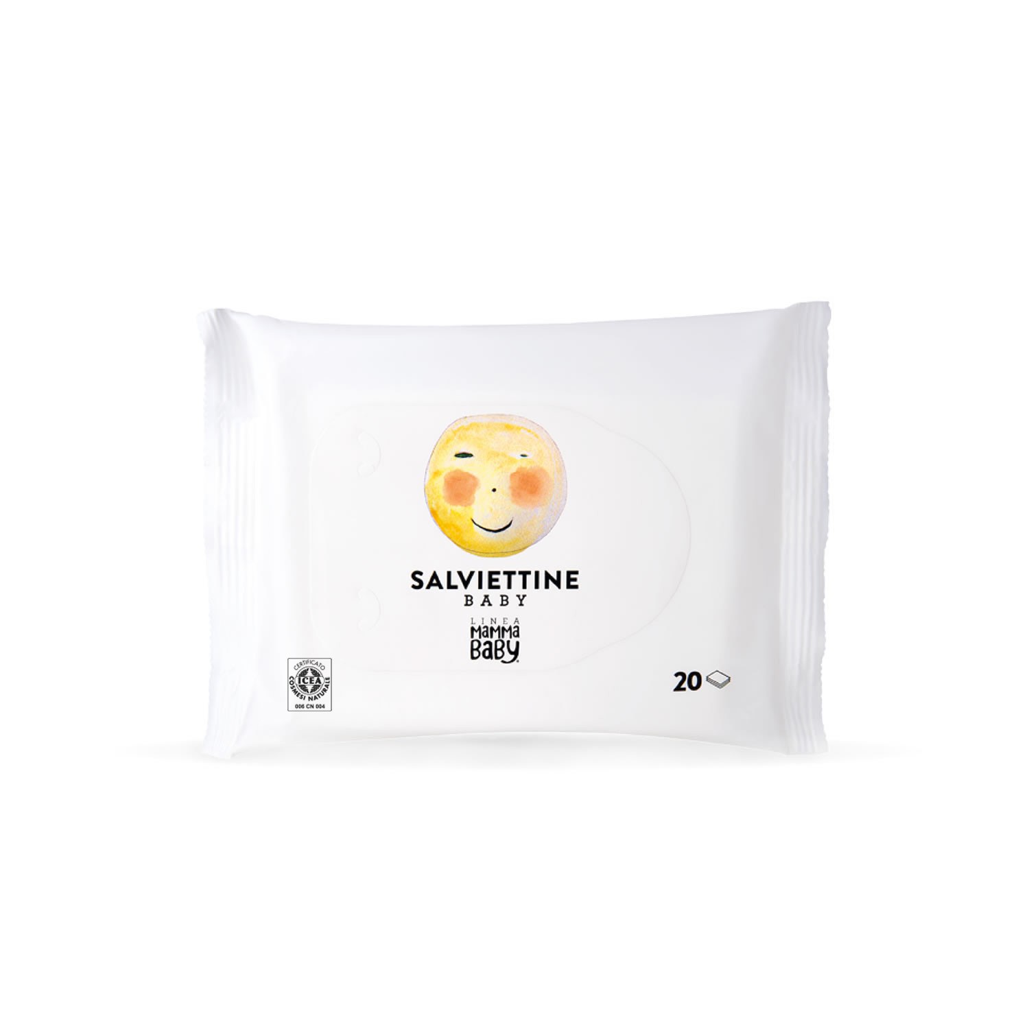 Salviettine detergenti Baby in viscosa 100% biodegradabili, ideali per detergere con delicatezza la pelle del bambino, al cambio del pannolino o in qualsiasi momento della giornata. Arricchite con olio vegetale e olio di mandorle, pantenolo, aloe, vitamine A e E, e provitamina B5. Confezione biodegradabile riciclabile. Prodotto certificato ICEA Cosmesi Naturale.
