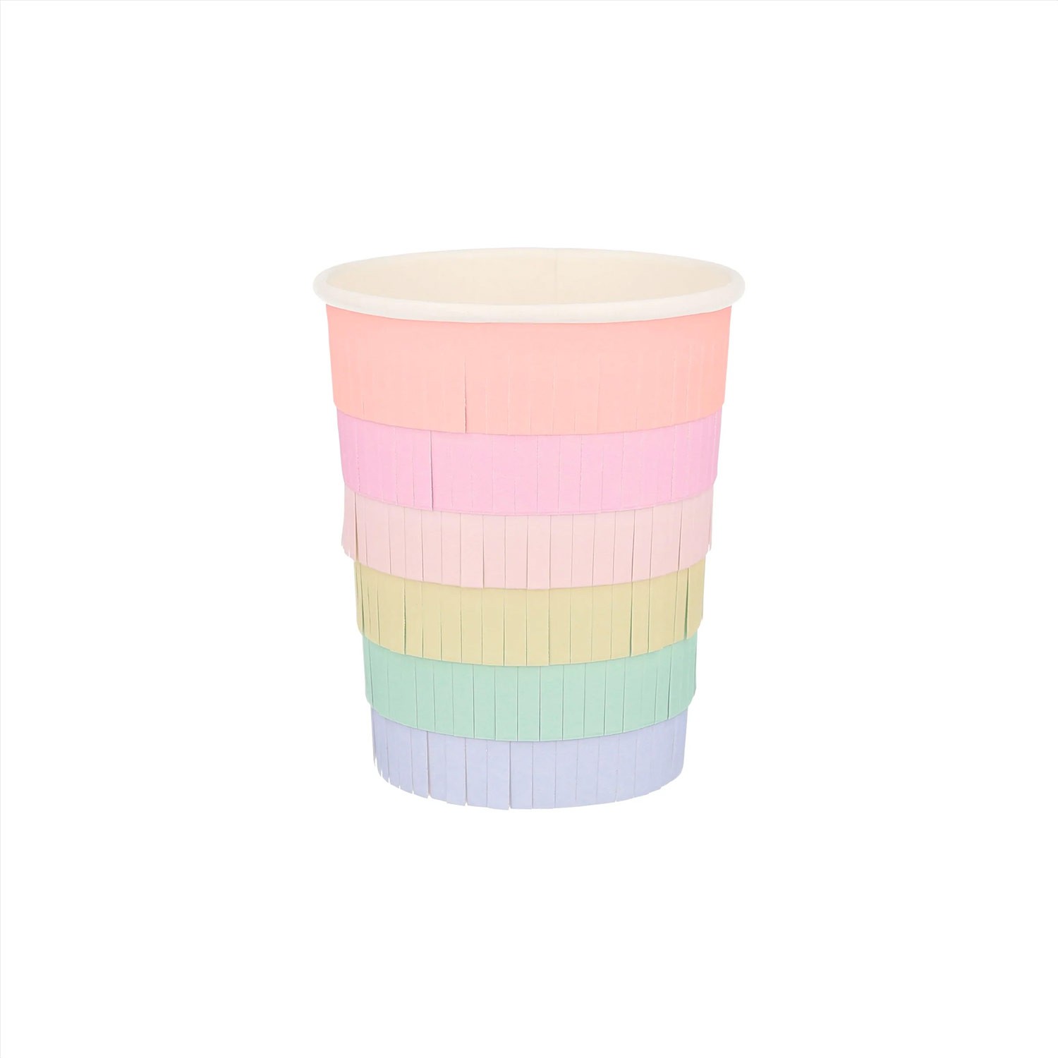 Stai organizzando una festa un pò alternativa? Questi simpatici bicchieri ricoperti da frange stratificate, in diversi colori stile arcobaleno, saranno perfetti per dare un bel tocco di colore alla tua tavola da party. Realizzati con carta FSC sostenibile e adatti sia per bevande calde o fredde.