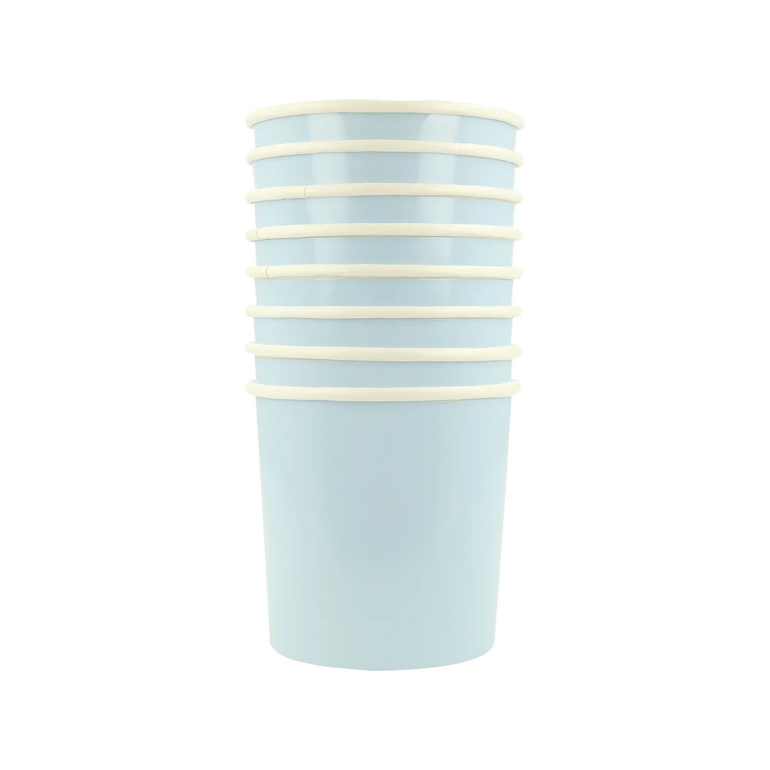 Questi graziosi bicchieri realizzati in carta FSC di colore azzurro cielo sono perfetti per un baby shower, una festa di compleanno in giardino, o per qualsiasi celebrazione in cui desideri sfoggiare una vera e propria tavolozza di colori rilassanti. Questi bicchieri fanno parte della nostra nuova ed elegante collezione "mix and match", da abbinare agli altri tovaglioli, piatti e bicchieri a tema per creare un bellissimo mix di colore.