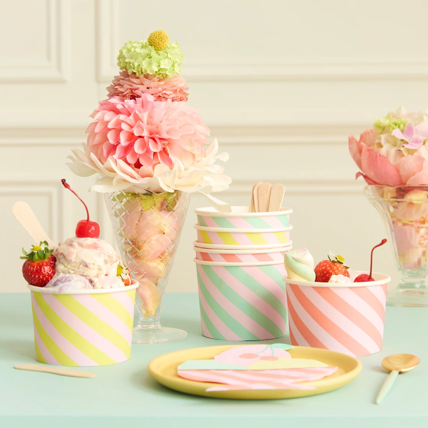 Coppette gelato di carta a righe + cucchiaini