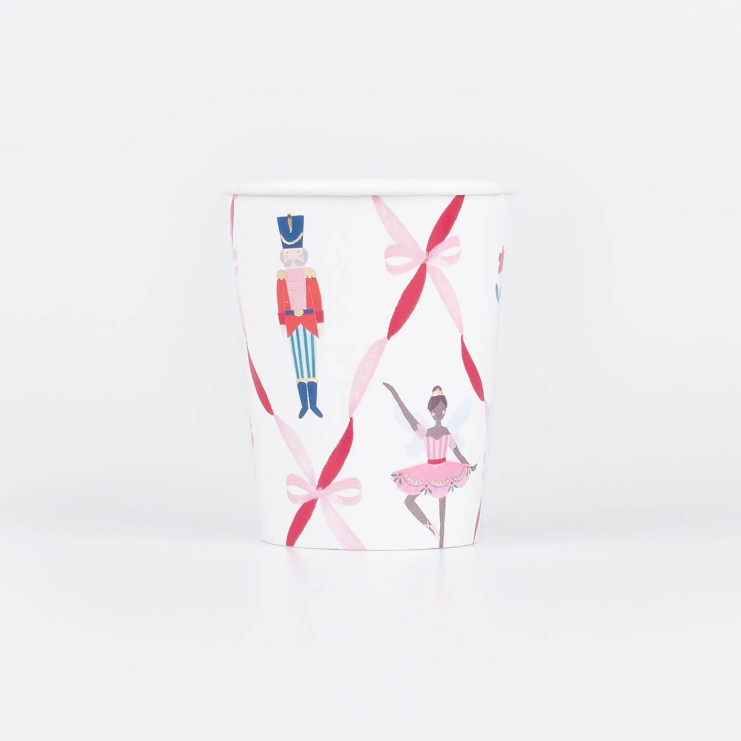 Porta la magia senza tempo del balletto de "Lo Schiaccianoci” sulla tavola delle tue feste con questi bicchieri di carta. Presentano personaggi iconici e fiocchi alla moda, in un elegante mix di colori natalizi classici e moderni, per catturare il fascino di questa incantevole fiaba. Un modo chic e pratico per aggiungere un tocco di tradizione alle tue celebrazioni. Realizzati in carta di qualità, sono pratici, decorativi e perfetti sia per bevande calde che fredde. Dettagli in lamina dorata lucida per un look elegante. Perfetti da abbinare ai piatti e bicchierini a tema.