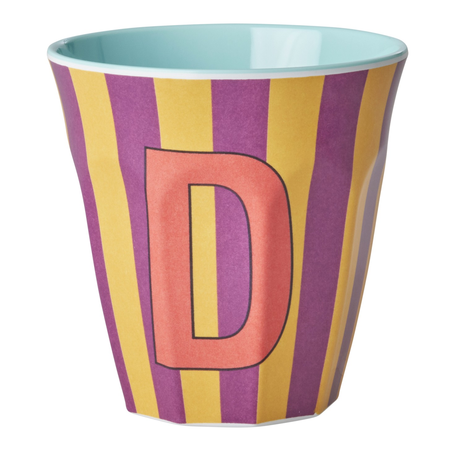 Bicchiere medio in melamina a righe con lettera D