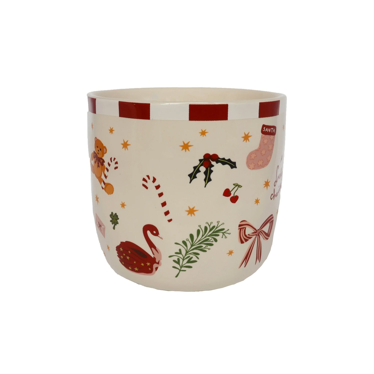 Porta l'incanto di una fiaba invernale e la gioia delle Feste sulla tua tavola con questo bicchiere natalizio realizzato in ceramica. Ritorna bambino a ogni sorso, grazie alla splendida fantasia a tema disegnata sopra.