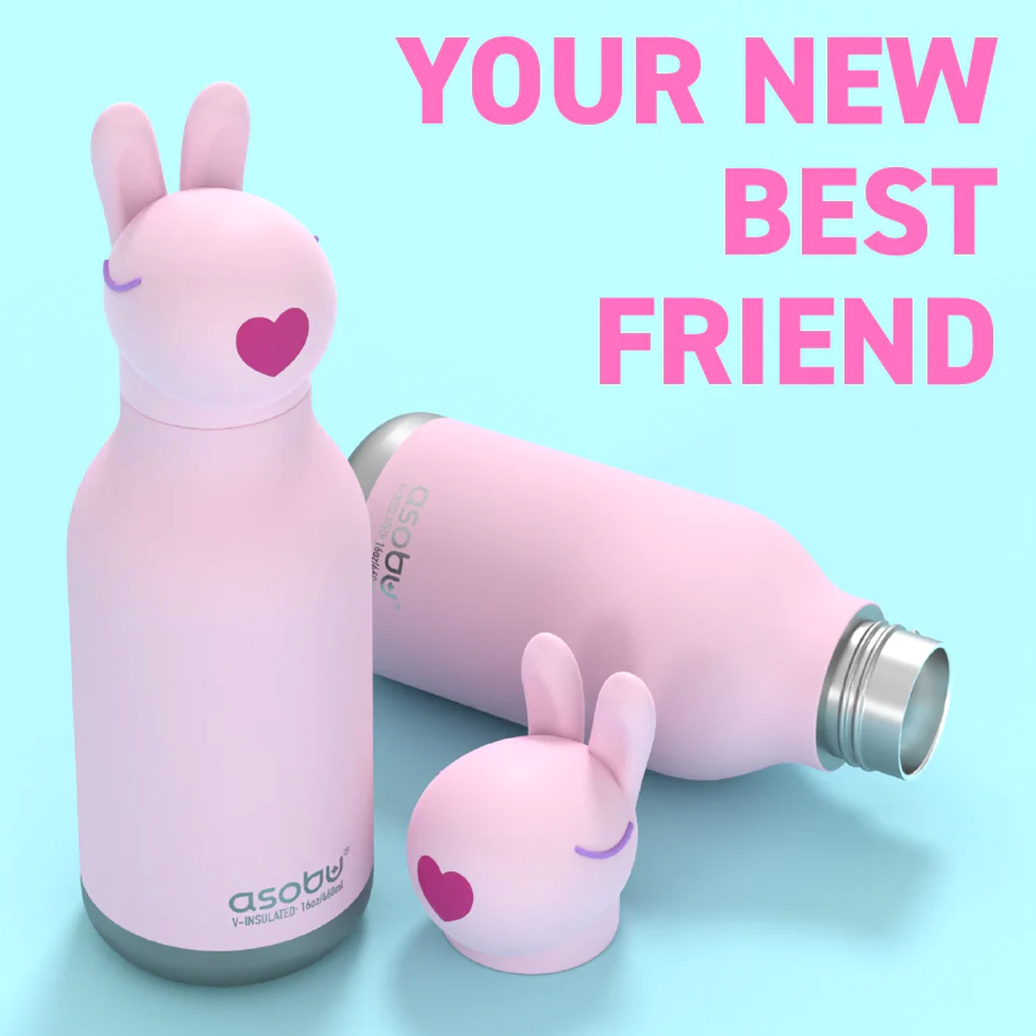 Borraccia in acciaio inox coniglietto rosa