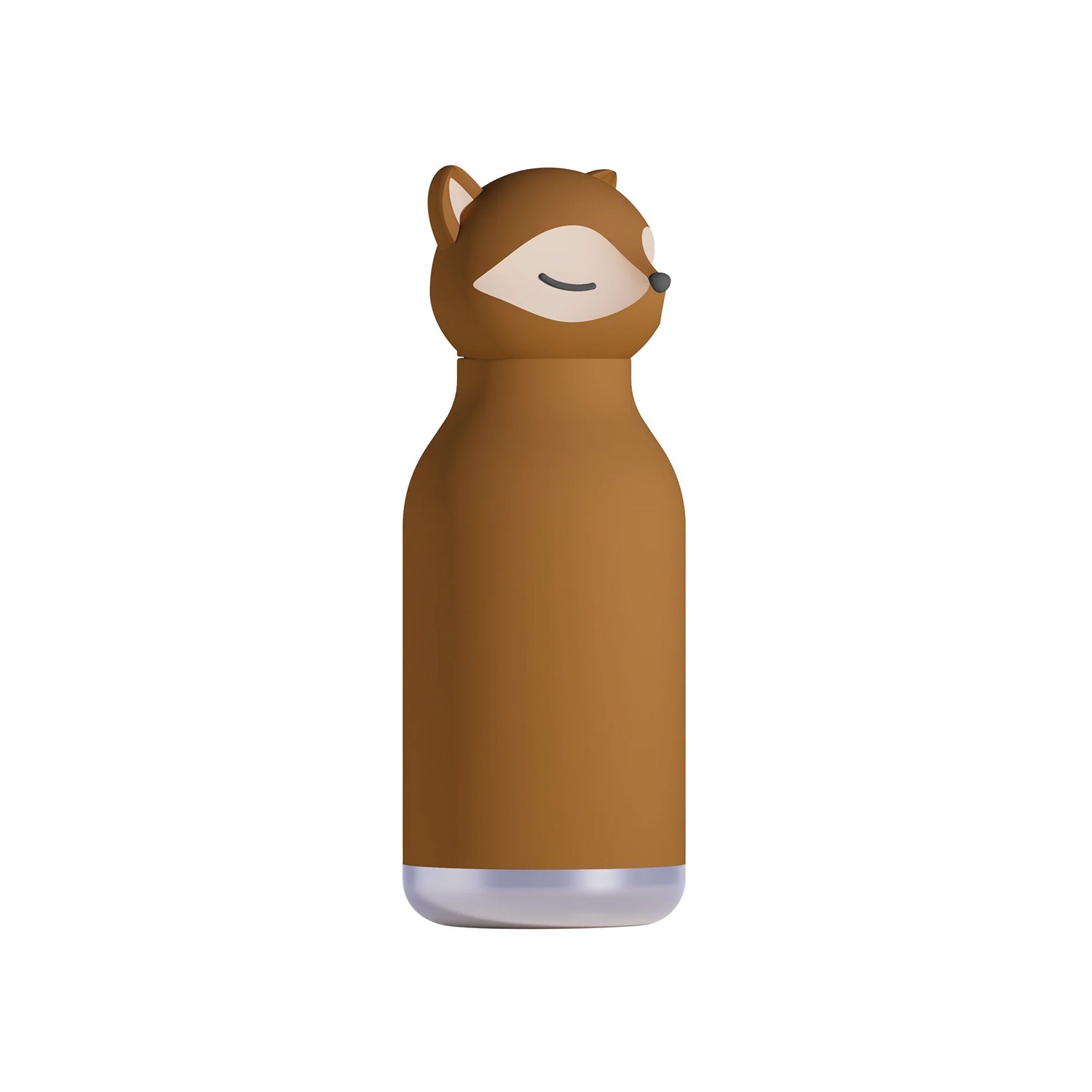 Questa borraccia in acciaio inox presenta un tappo-testa dal design a forma di tenera volpina.