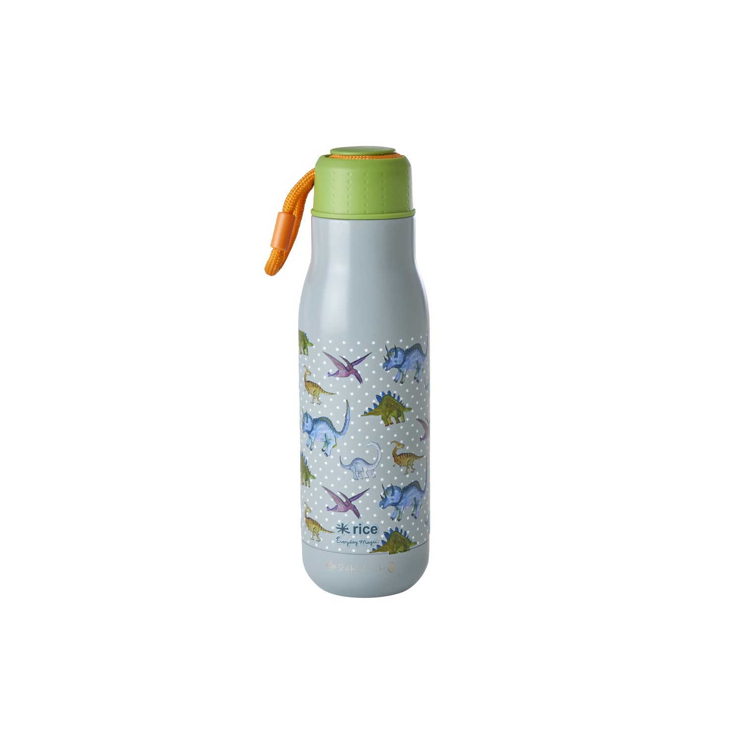 Questa borraccia bimbo azzurro ghiaccio con stelline e dinosauri disegnati all over non solo è bella da vedere, è anche super pratica, facile da usare e di ottima qualità.