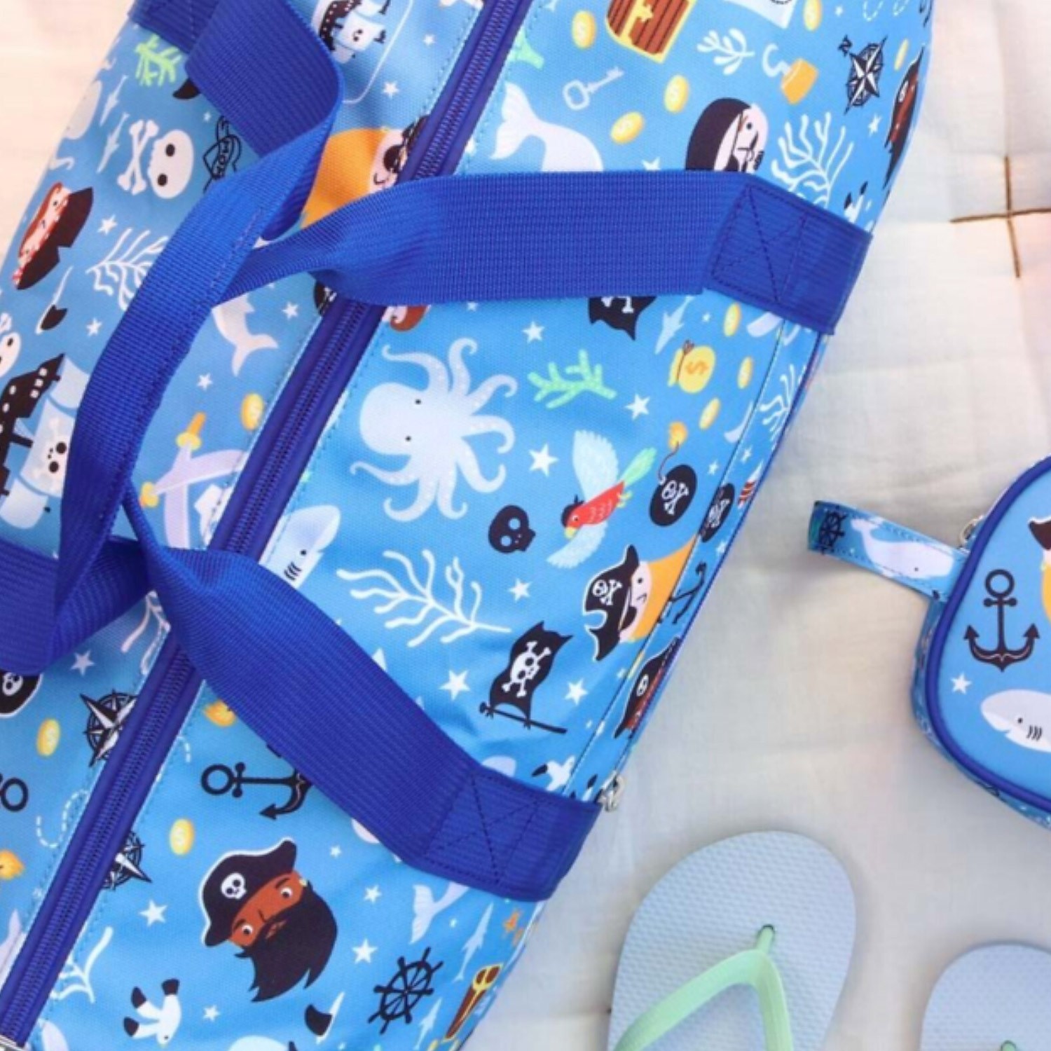 Borsone da viaggio azzurro con pirati