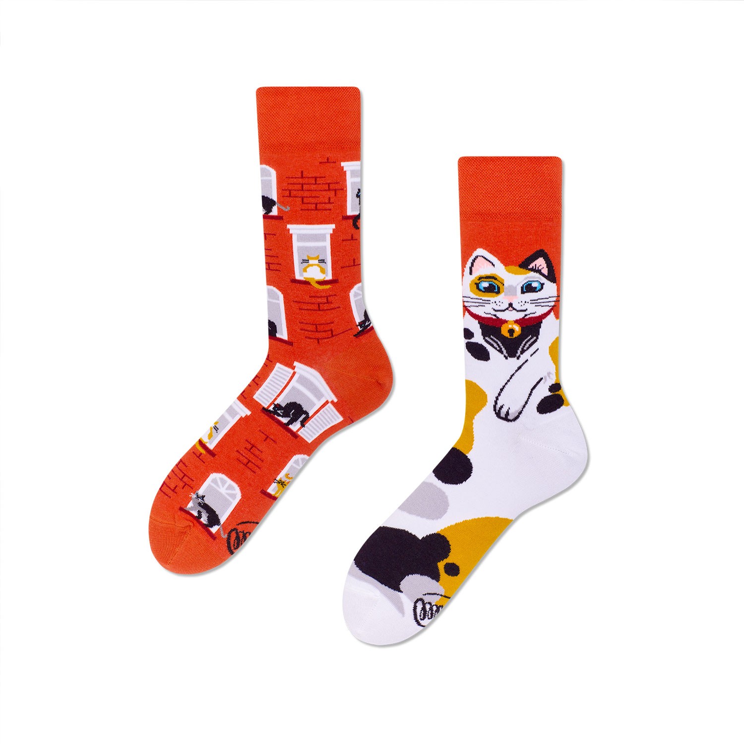 Per gli amanti dei nostri amici felini a quattro zampe, questi simpatici calzini di colore arancione e bianco con fantasia a tema gattini di città, sono perfetti per trascorrere le serate davanti ad un bel film! Ideali anche per essere riempiti con tanti dolcetti e caramelle per la Befana. Disponibili in 3 taglie.
