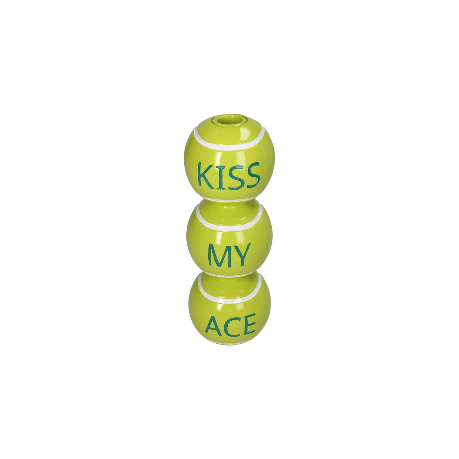 Questo portacandele realizzato in gres porcellanato è un pezzo unico e audace, ispirato al mondo del tennis e pensato per chi ama l'arredamento giocoso e di carattere. Realizzato con tre sfere verde lime che ricordano le palline da tennis, celebra uno dei momenti più tecnici del gioco: l' "Ace".