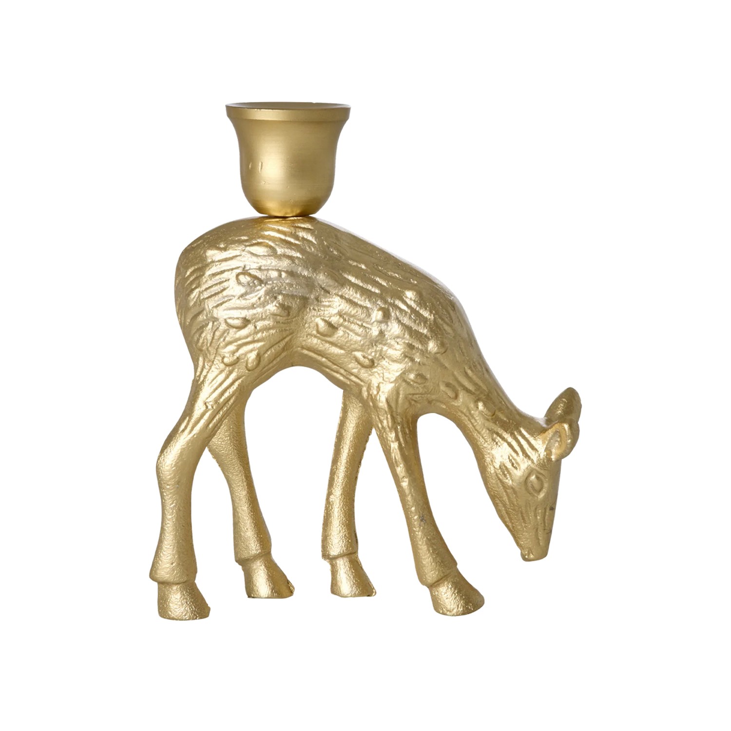 Questo incantevole portacandele a forma di tenero cerbiatto non è solo un accessorio, ma un vero e proprio elemento decorativo in grado di scaldare qualsiasi ambiente, dal soggiorno alla tavola delle Feste. La sua finitura dorata lucida cattura la luce, creando un punto focale di pura eleganza.