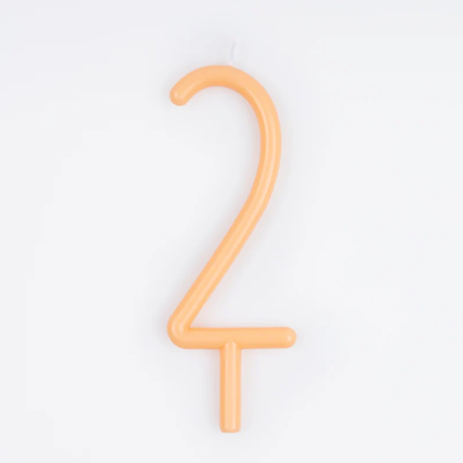 Delicata candelina di compleanno Meri Meri a forma di numero 2 arancione pastello. Perfetta per decorare le tue torte di compleanno, abbinala ad altre decorazioni a tema per creare un tavolo di compleanno davvero speciale.