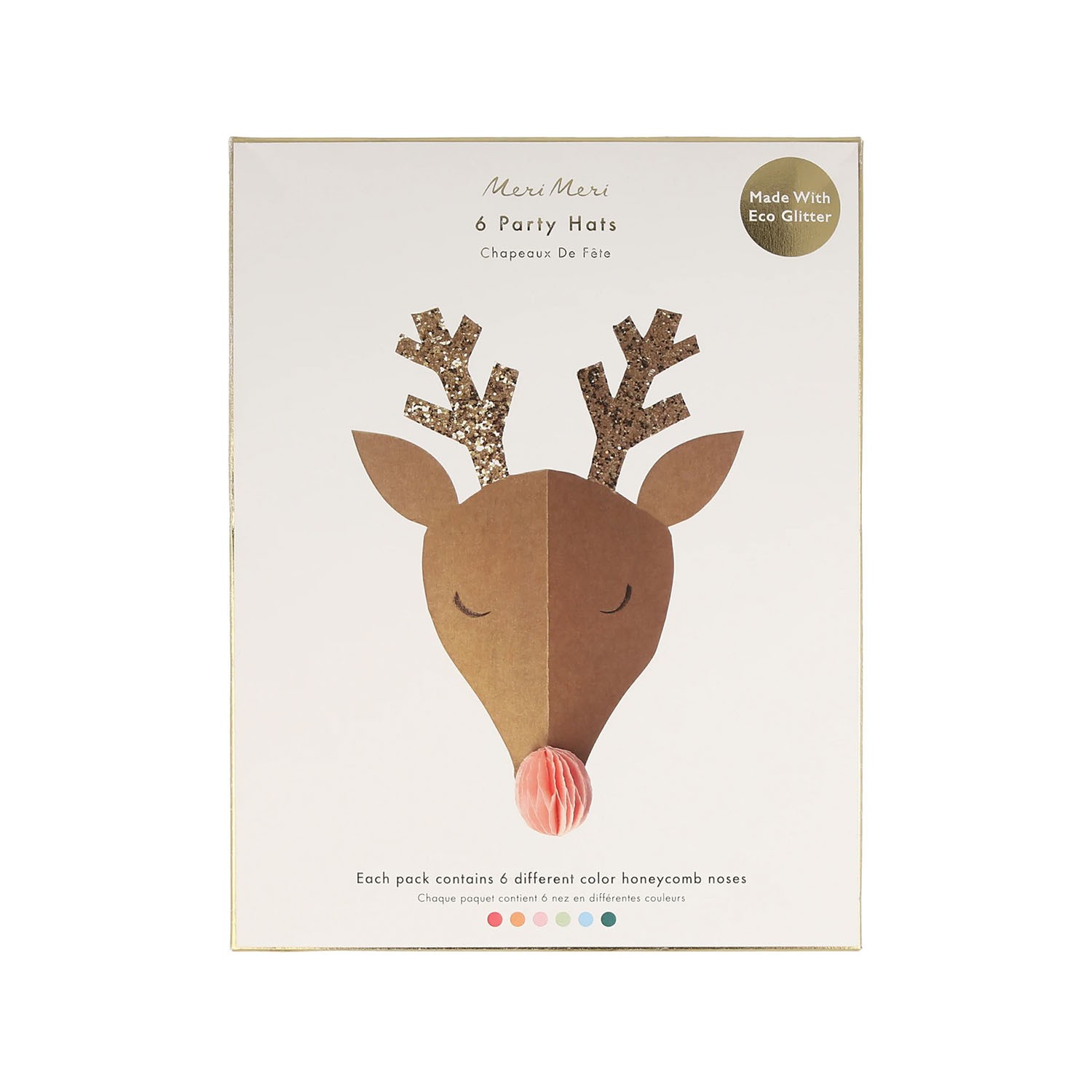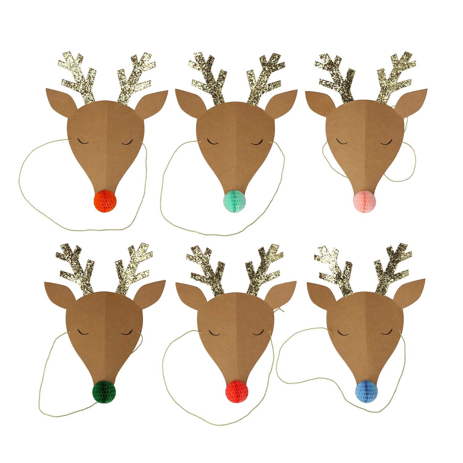 Perché avere comunissimi cappellini da festa di carta quando puoi indossare questi a forma di renna? Presentano corna luccicanti e simpatici nasi a pompon e sono perfetti sia per i bambini che per gli adulti. Indossali alla festa di Natale o per travestimenti fantasiosi con gli amici. Dotati di pratico elastico sottile per essere indossati in modo sicuro. Adatti dai 3 anni in su. Realizzati in carta FSC sostenibile.