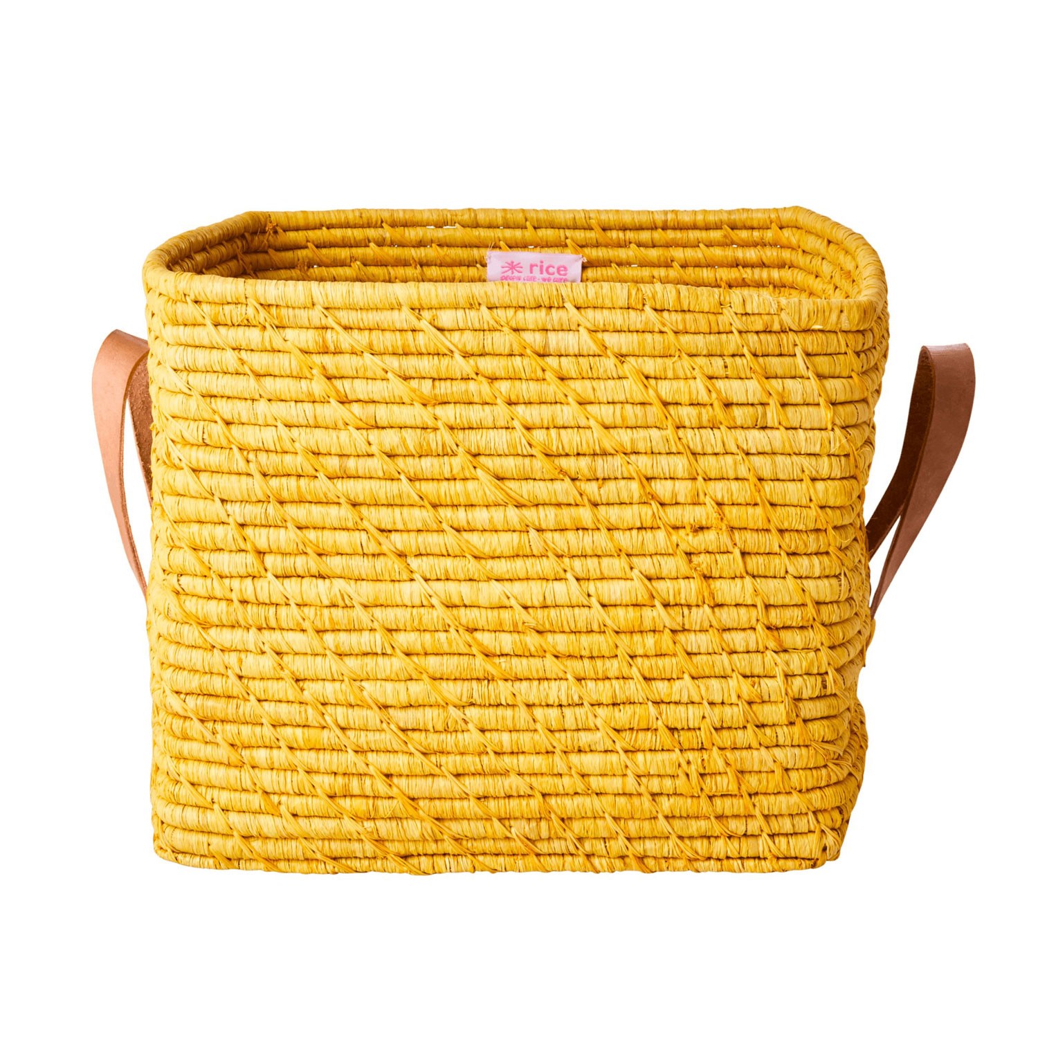 Cesta portaoggetti quadrata in rafia gialla