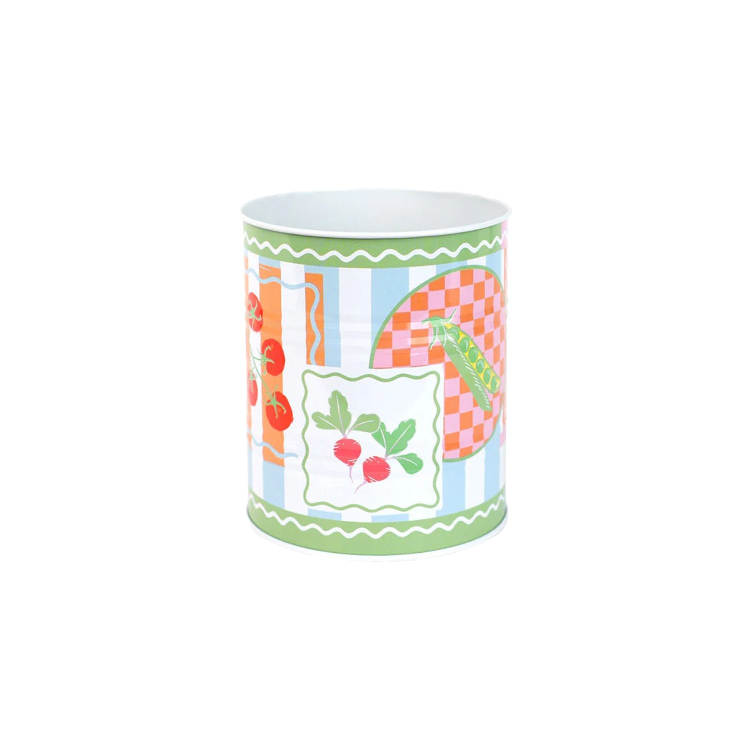 Organizza la tua cucina con un'esplosione di allegria e colore grazie a questo contenitore in latta multifunzione. Caratterizzato da un design vivace che richiama la freschezza dell'orto, questo barattolo è l'accessorio perfetto per chi ama uno stile "country-chic" moderno e spensierato, una piccola opera d'arte grafica che unisce pattern geometrici a illustrazioni culinarie.