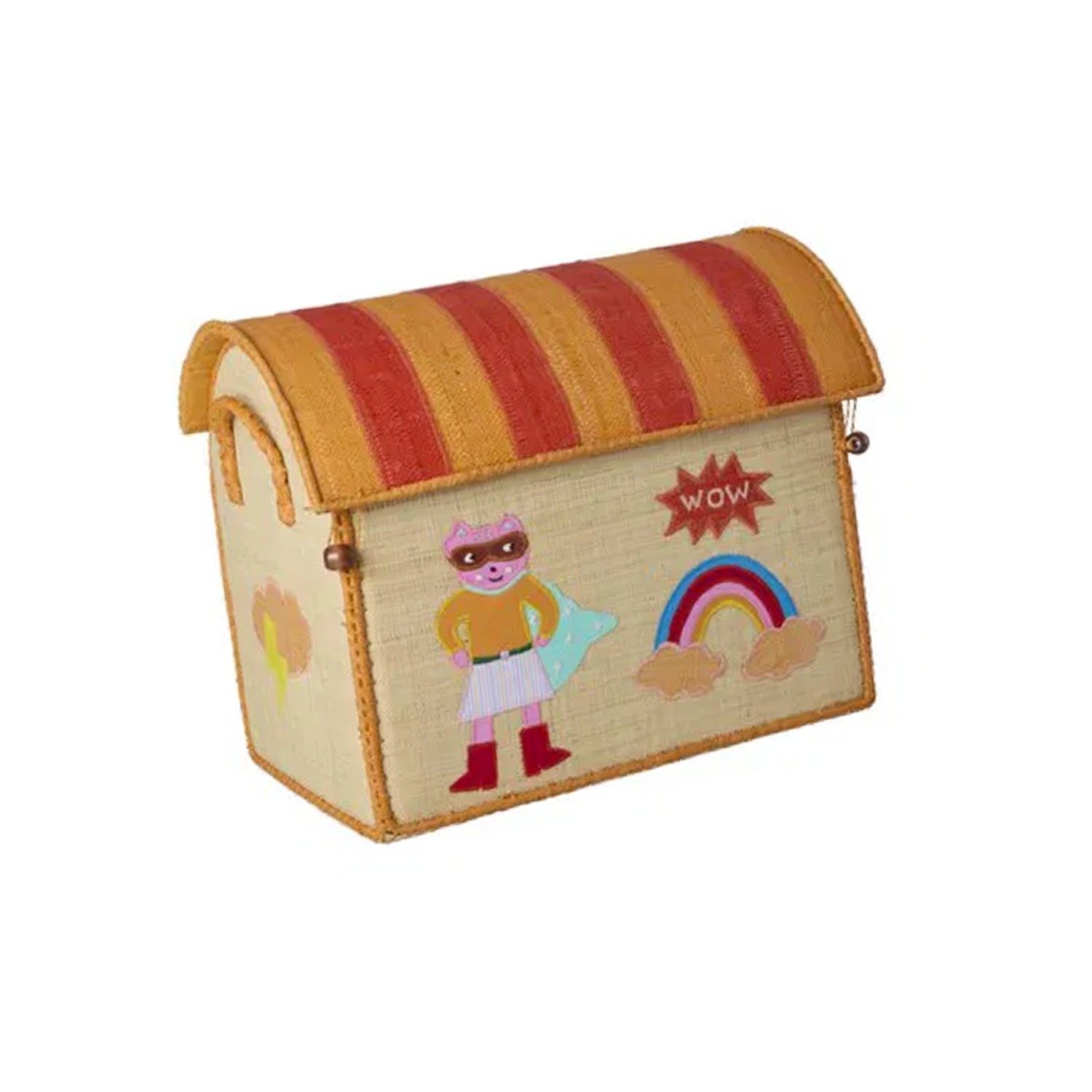 Cesta portagiochi piccola in rafia con ricamo Super Hero