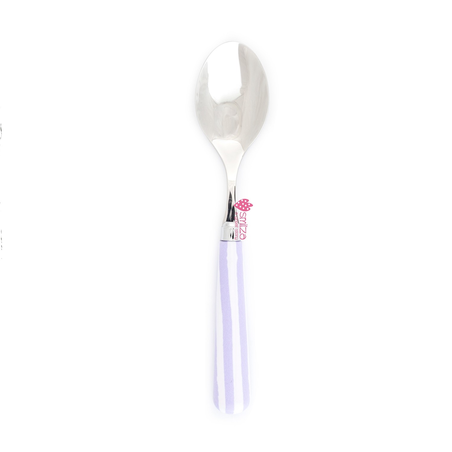Dona un tocco di allegria e personalità alla tua tavola con questo delizioso cucchiaio da frutta! Realizzato in acciaio inossidabile 18/10 di alta qualità, è robusto e duraturo, perfetto per un uso quotidiano. Il manico in resina, impreziosito da un grazioso decoro a righe color lavanda e bianche, lo rende un vero e proprio gioiello per la tua tavola.