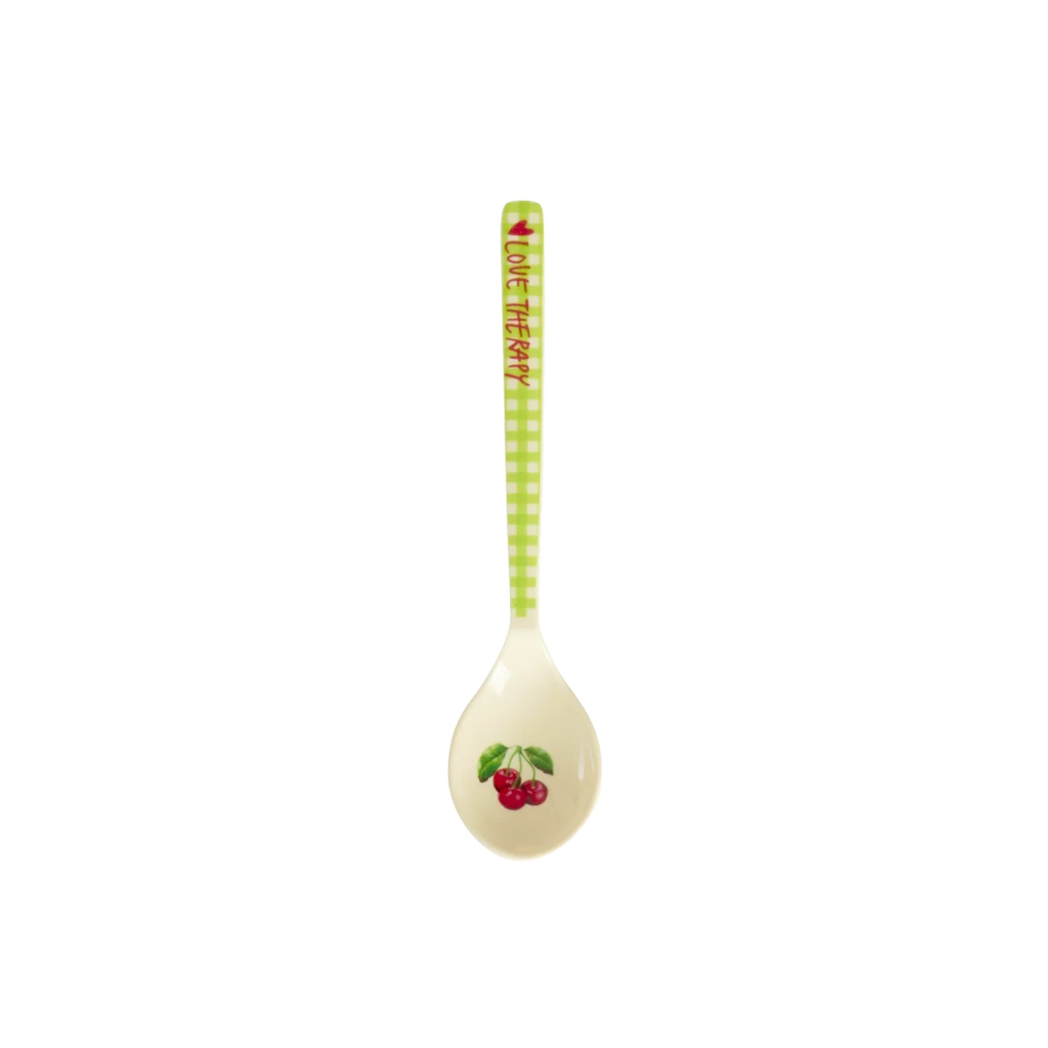 Grazioso cucchiaino da tè in melamina decorato con quadretti verdi e dolci ciliegie della nuova collezione Rice x Love Therapy. Una collezione che celebra la creatività, i colori e la magia quotidiana! Questo cucchiaino in melamina è perfetto per gustare una buonissima torta, per condividere un dessert o una deliziosa salsa.