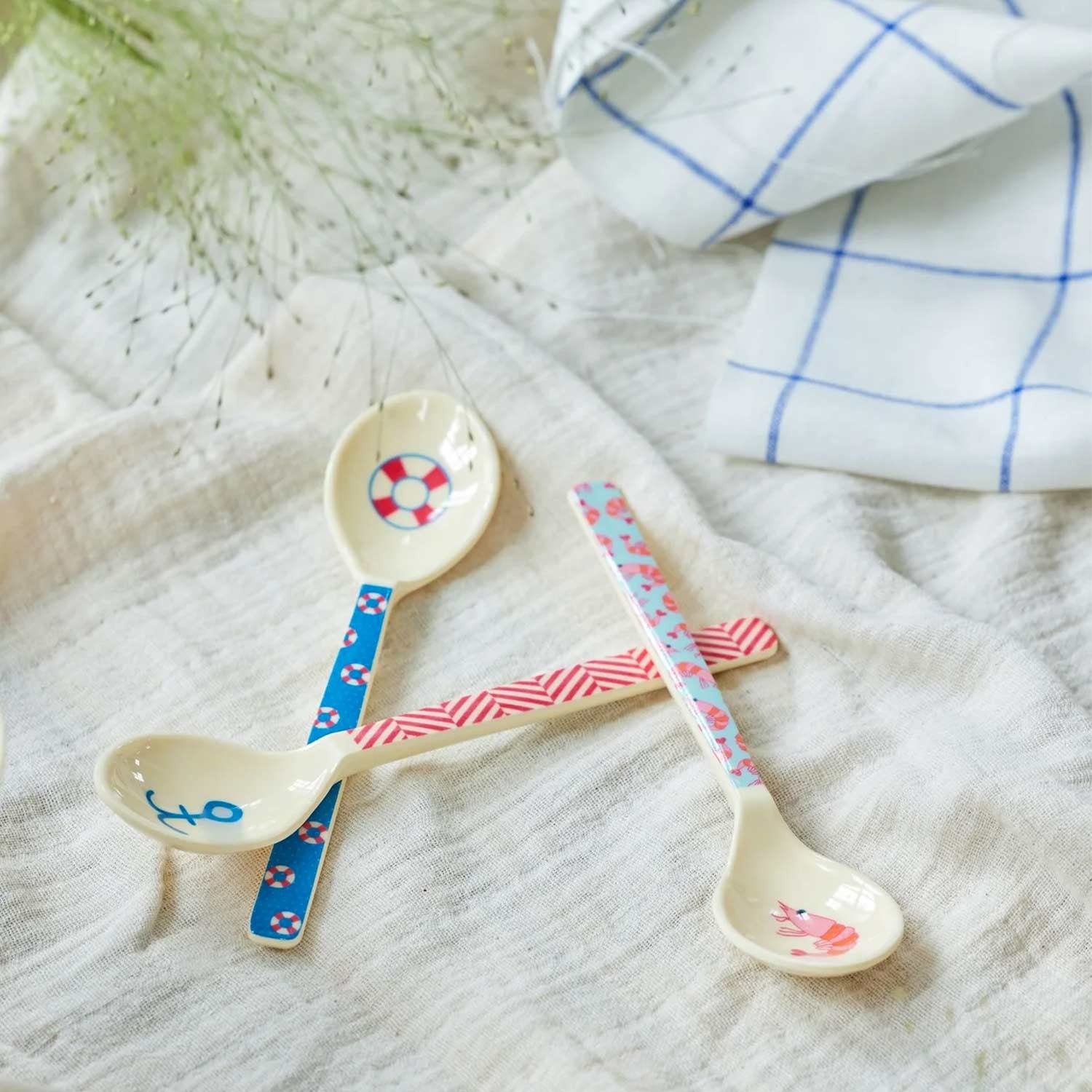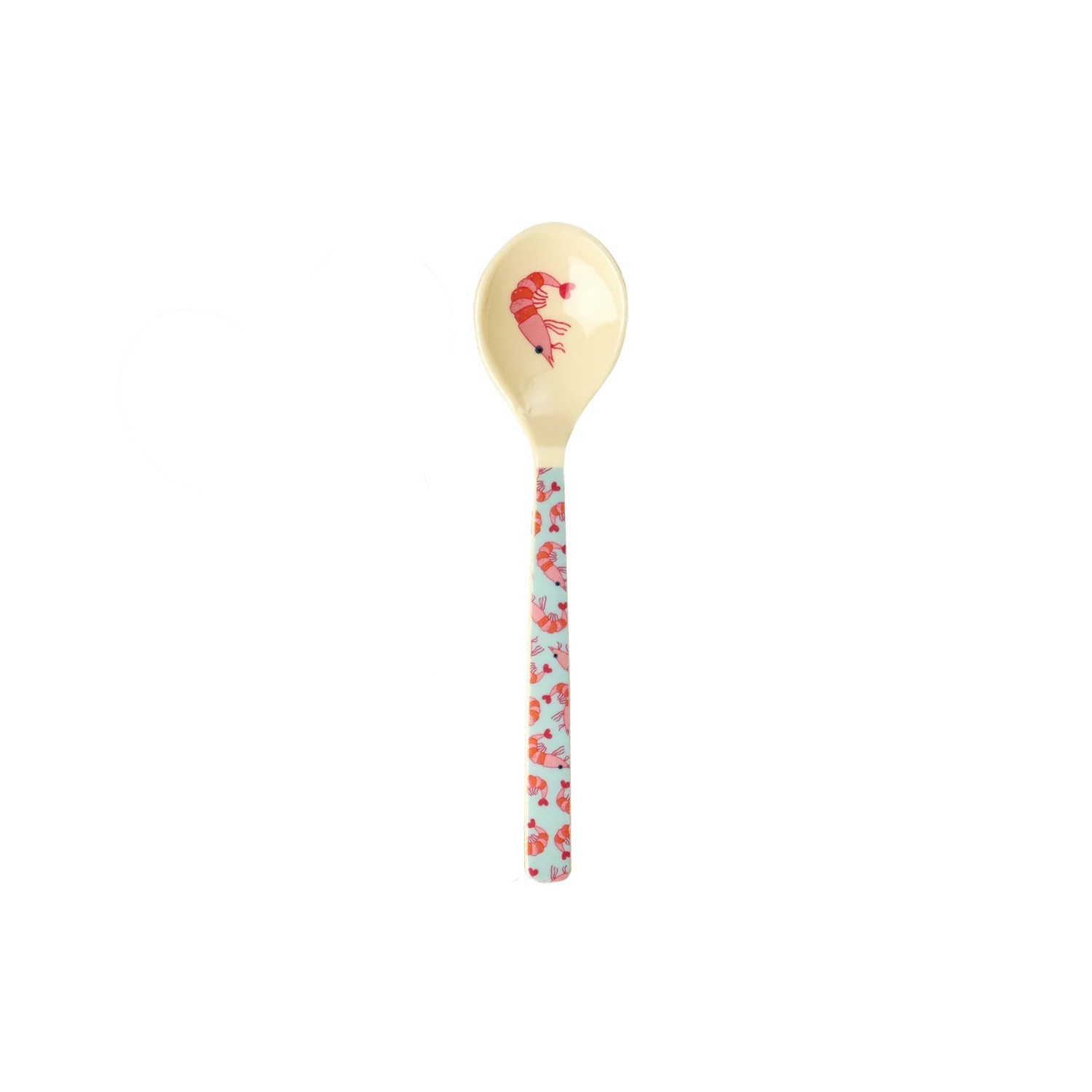 Grazioso cucchiaino da tè in melamina con simpatica fantasia di gamberetti disegnata sul manico azzurro e sull’apice. Ideale per sorseggiarsi una tazza di tè in allegria. Abbinalo agli altri nostri cucchiaini a tema per un set davvero colorato!