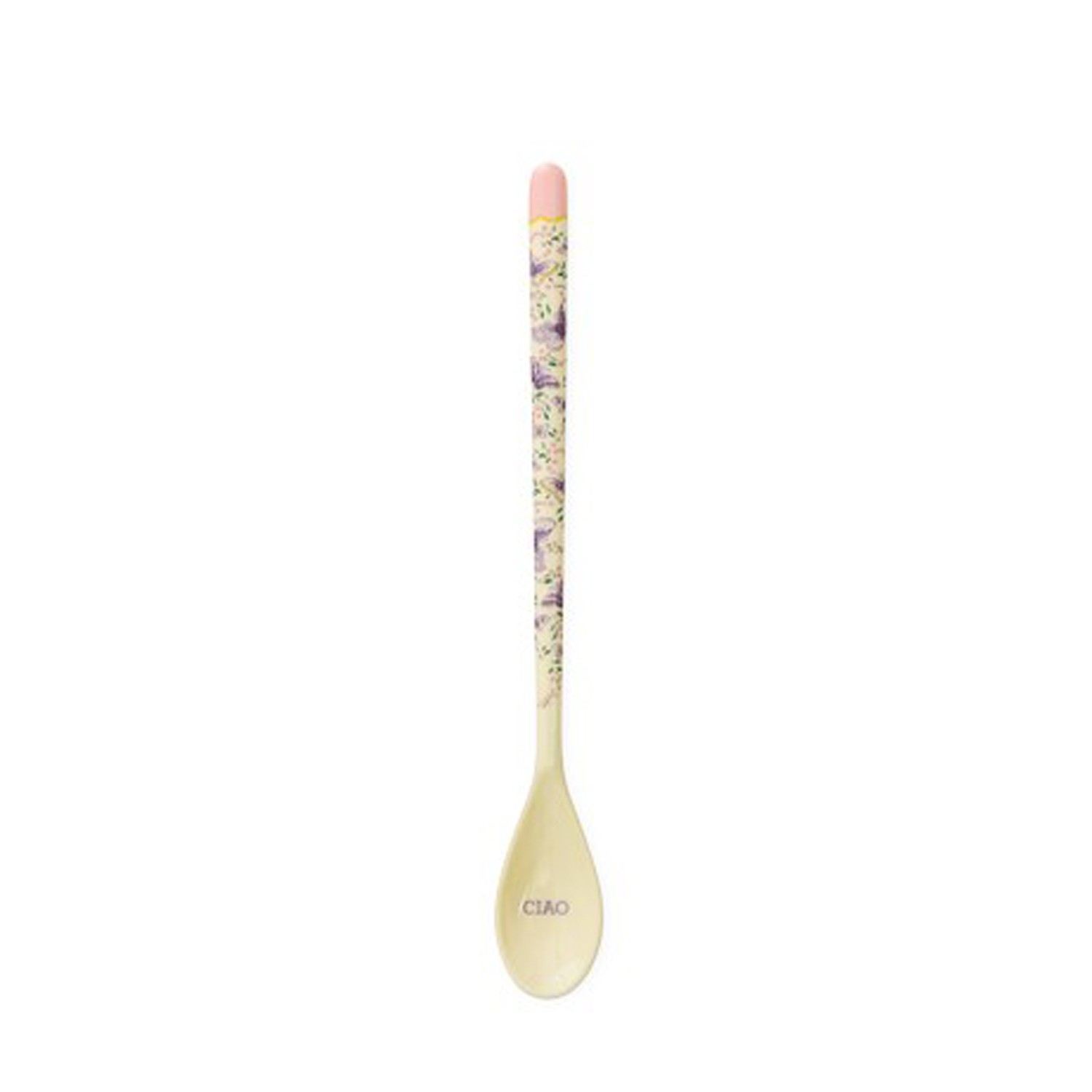Cucchiaino lungo in melamina color crema con graziosa stampa floreale disegnata sul manico e scritta CIAO sull’apice. Ideale per sorseggiarsi un bel bicchiere di latte o per un aperitivo pieno di colore, desiderando l'estate!