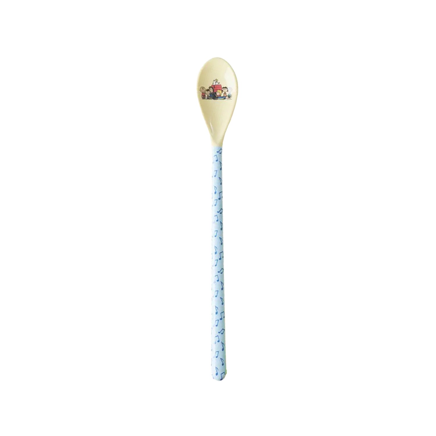Cucchiaino lungo in melamina con simpatico motivo di Snoopy e i suoi amici disegnato sull’apice con tante note musicali all over stampate sul manico azzurro. Perfetto per gli amanti dei Peanuts, per sorseggiarsi un bel bicchiere di latte o per un aperitivo pieno di colore.