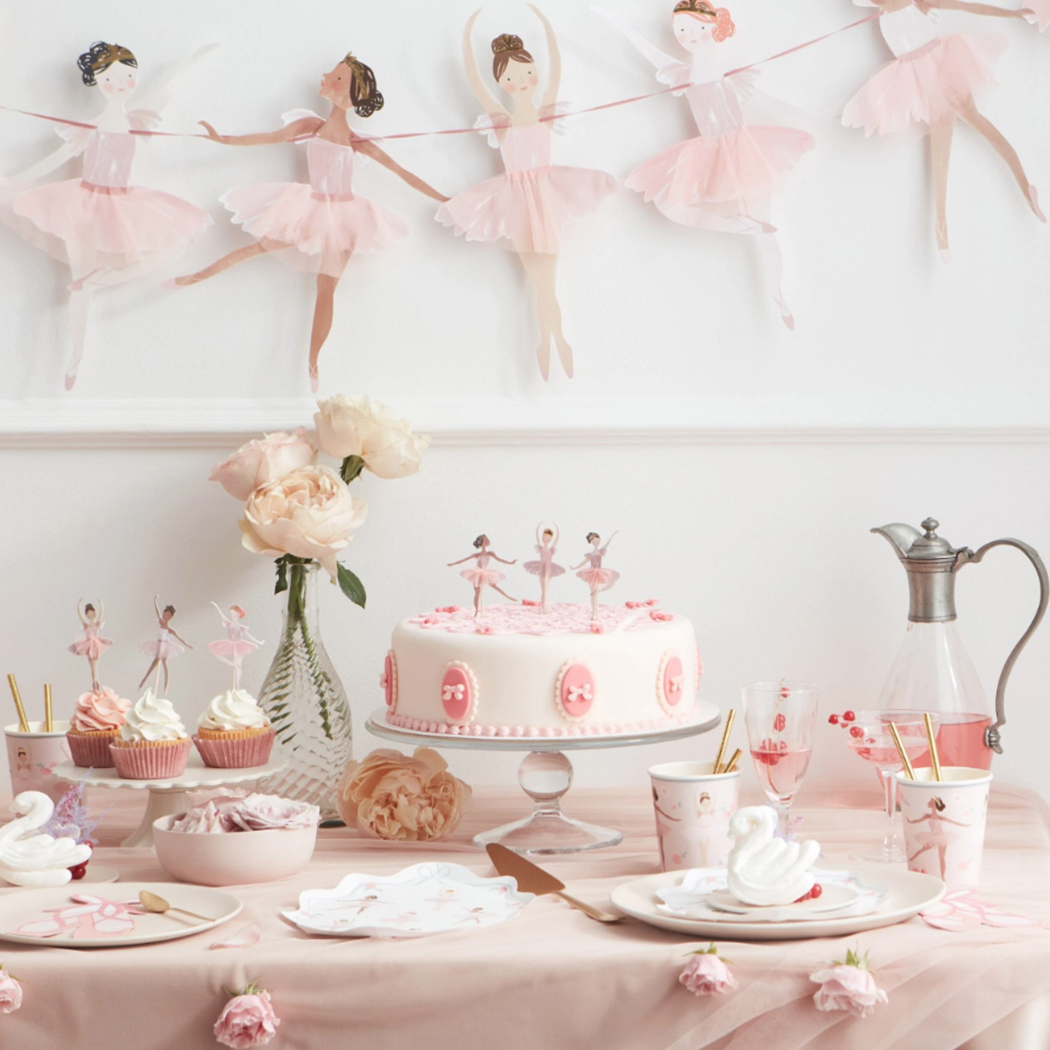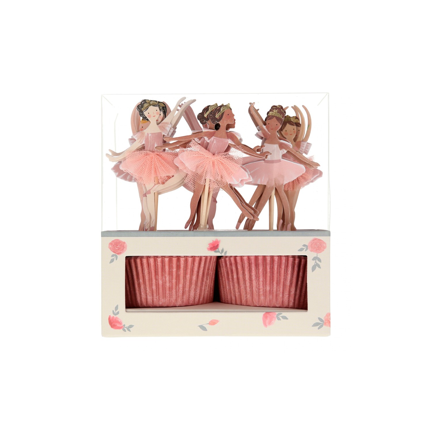 Questo favoloso kit per cupcake è perfetto per creare gustose prelibatezze per una festa di bambine appassionate di danza. Il kit include 24 toppers in 6 diversi design dai dettagli in lamina dorata lucida ed impreziositi da decorazioni in tulle rosa, e da 24 pirottini di carta in coordinato rosa.