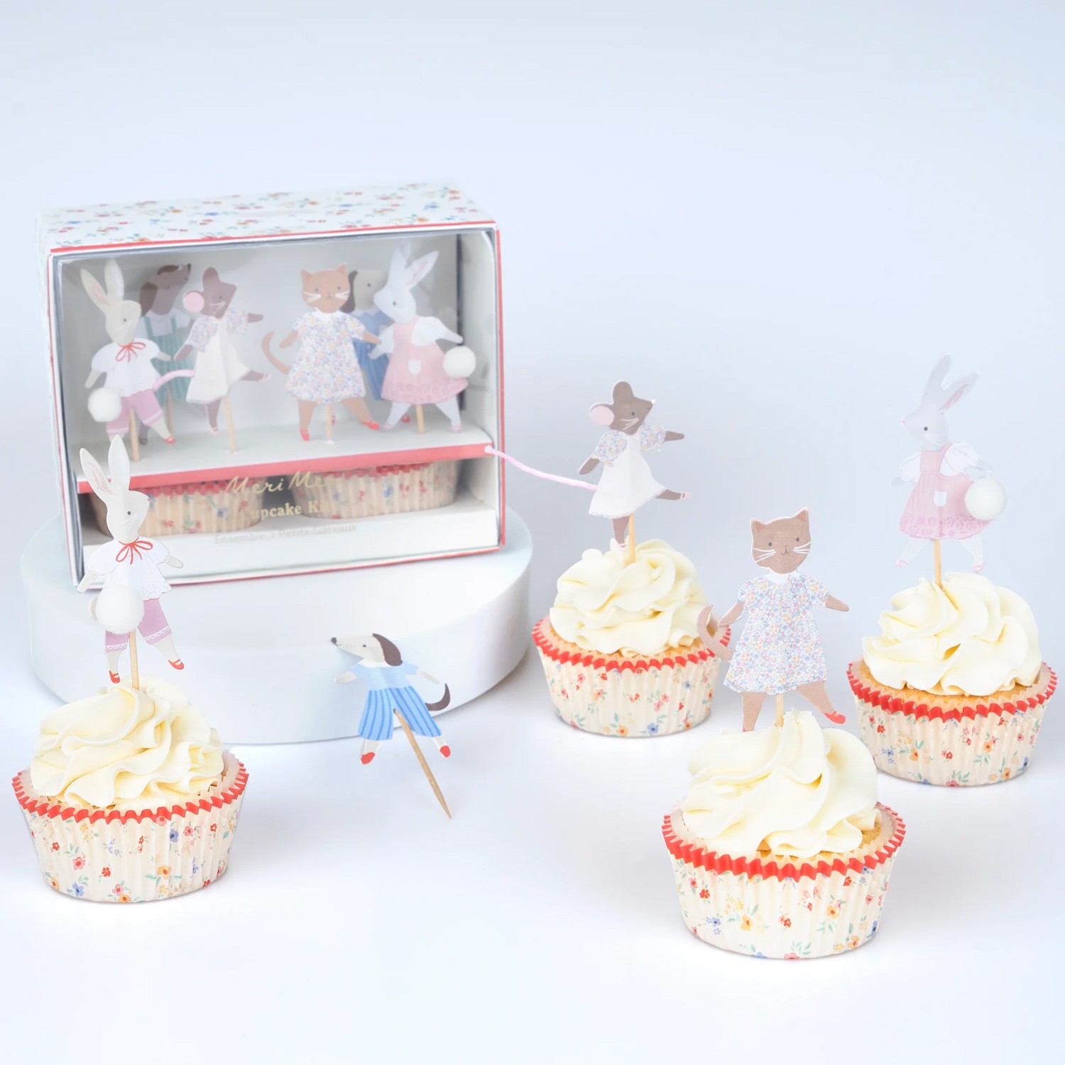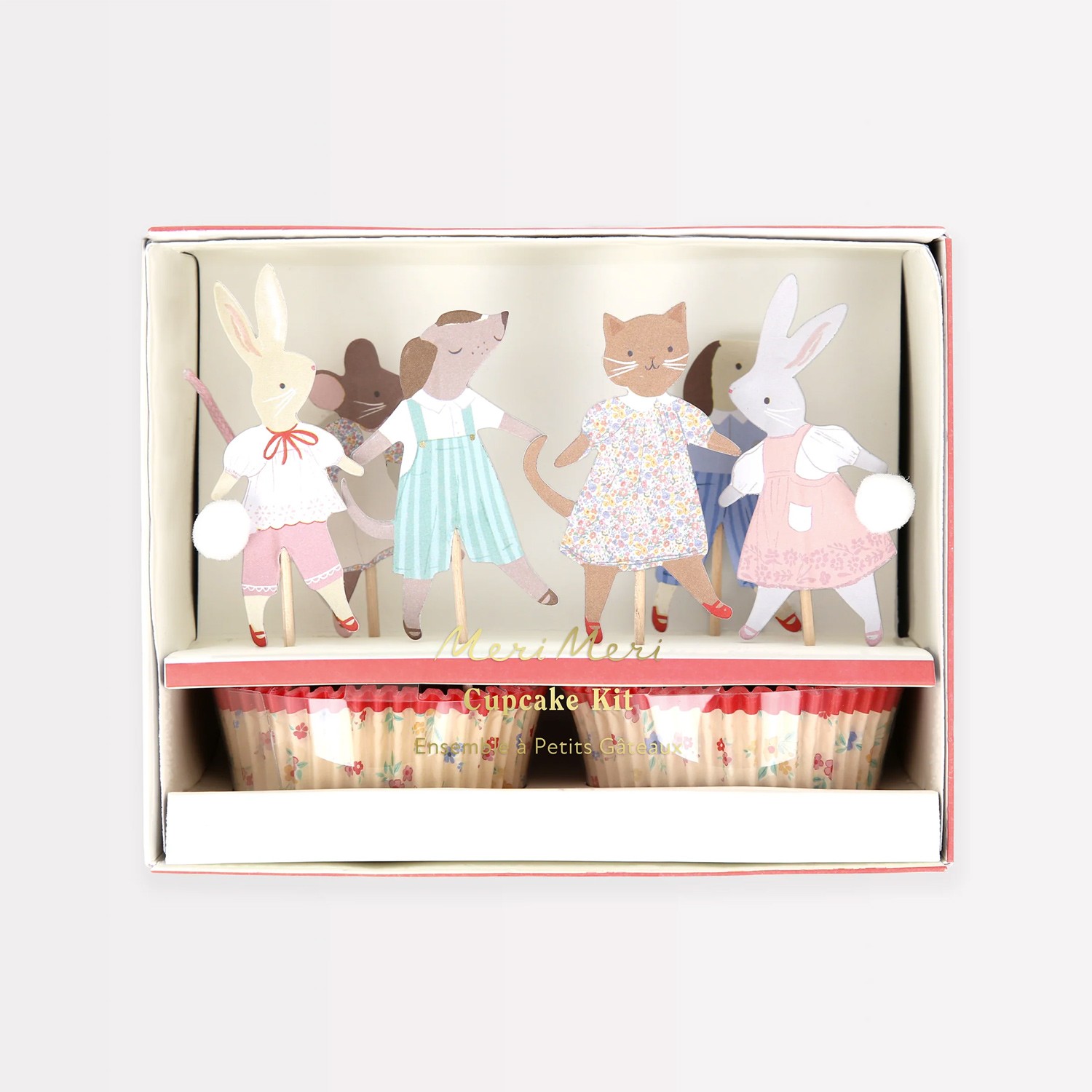 Questo kit per cupcake a tema amici animali è il modo perfetto per festeggiare i primi compleanni o baby shower con dolcezza e tanta felicità. Ispirati alle illustrazioni e alle palette di colori vintage, questi topper raffigurano dolcissimi animali che festeggiano un compleanno e sono abbinati ai pirottini per cupcake con stampa floreale e bordi rossi. Disponi i cupcake decorati per creare un meraviglioso centrotavola, oppure presentali su piatti singoli per deliziare i tuoi ospiti.