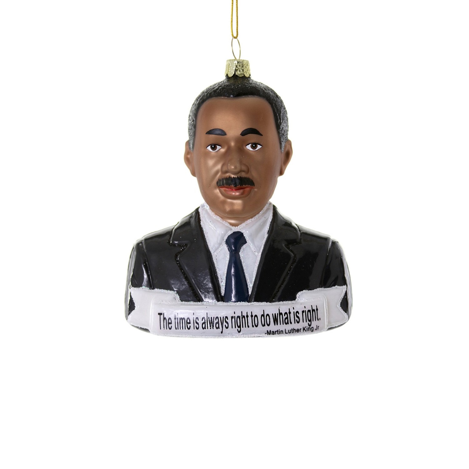 Decorazione in vetro soffiato dipinta a mano raffigurante Martin Luther King, ideale da appendere all’albero di Natale o in qualsiasi punto della casa per darle un bel tocco di colore.