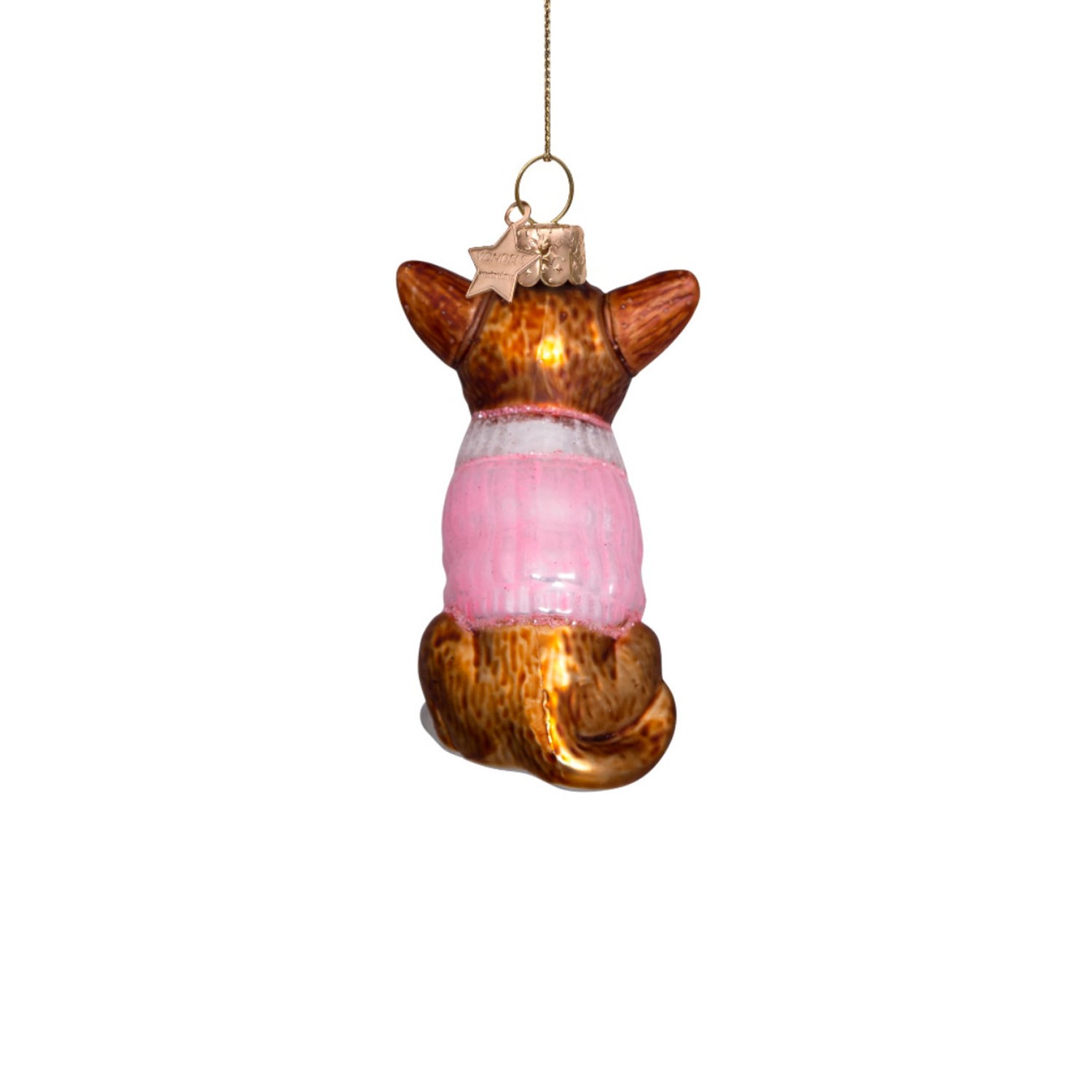 Decorazione in vetro soffiato chihuahua con maglietta rosa