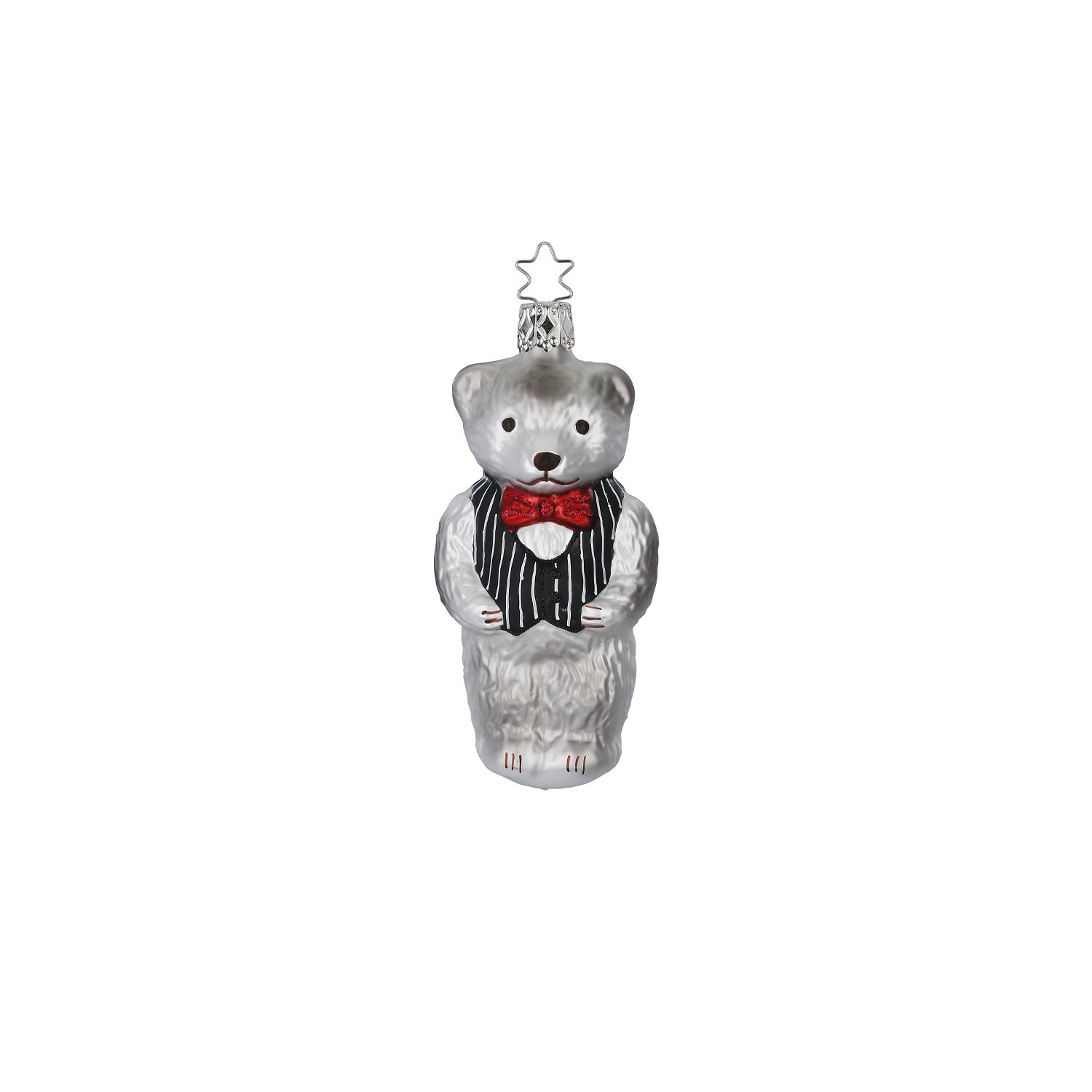 Decorazione in vetro soffiato dipinta a mano raffigurante un simpatico orsetto con lo smoking in versione cameriere, ideale da appendere all’albero di Natale o in qualsiasi punto della casa per darle un bel tocco di colore.