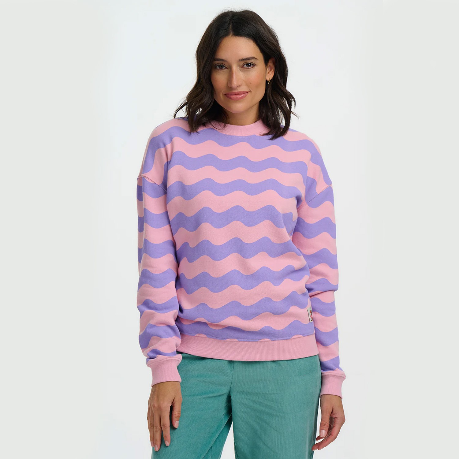 Felpa girocollo donna con onde rosa e viola | Gallinasmilza