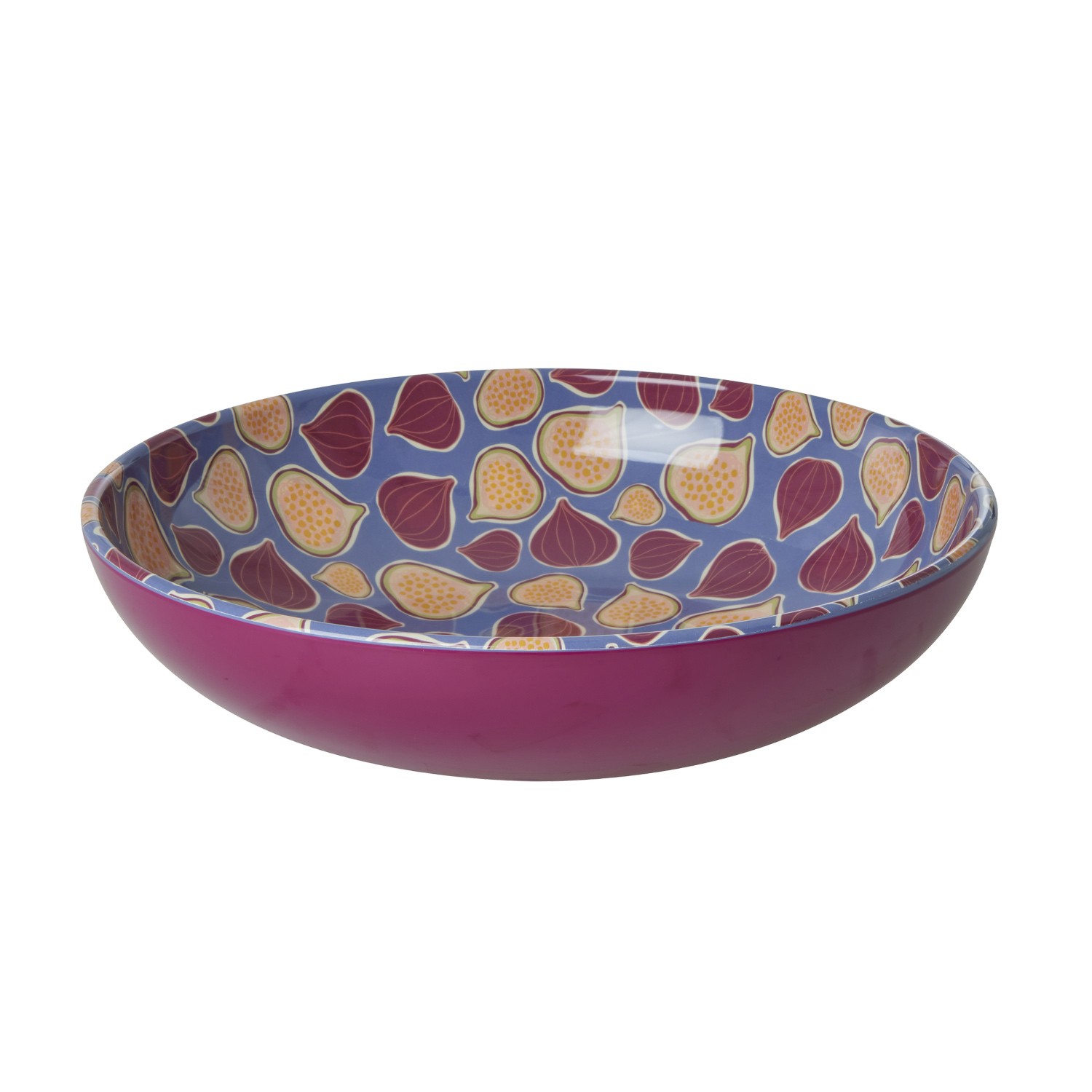 Insalatiera in melamina con interno viola dalla fantasia di fichi ed esterno in tinta unita color prugna. Questo articolo per la cucina si abbinerà perfettamente con le altre stoviglia a tema ed è perfetto per dare ancora più colore e stile alla tua tavola!