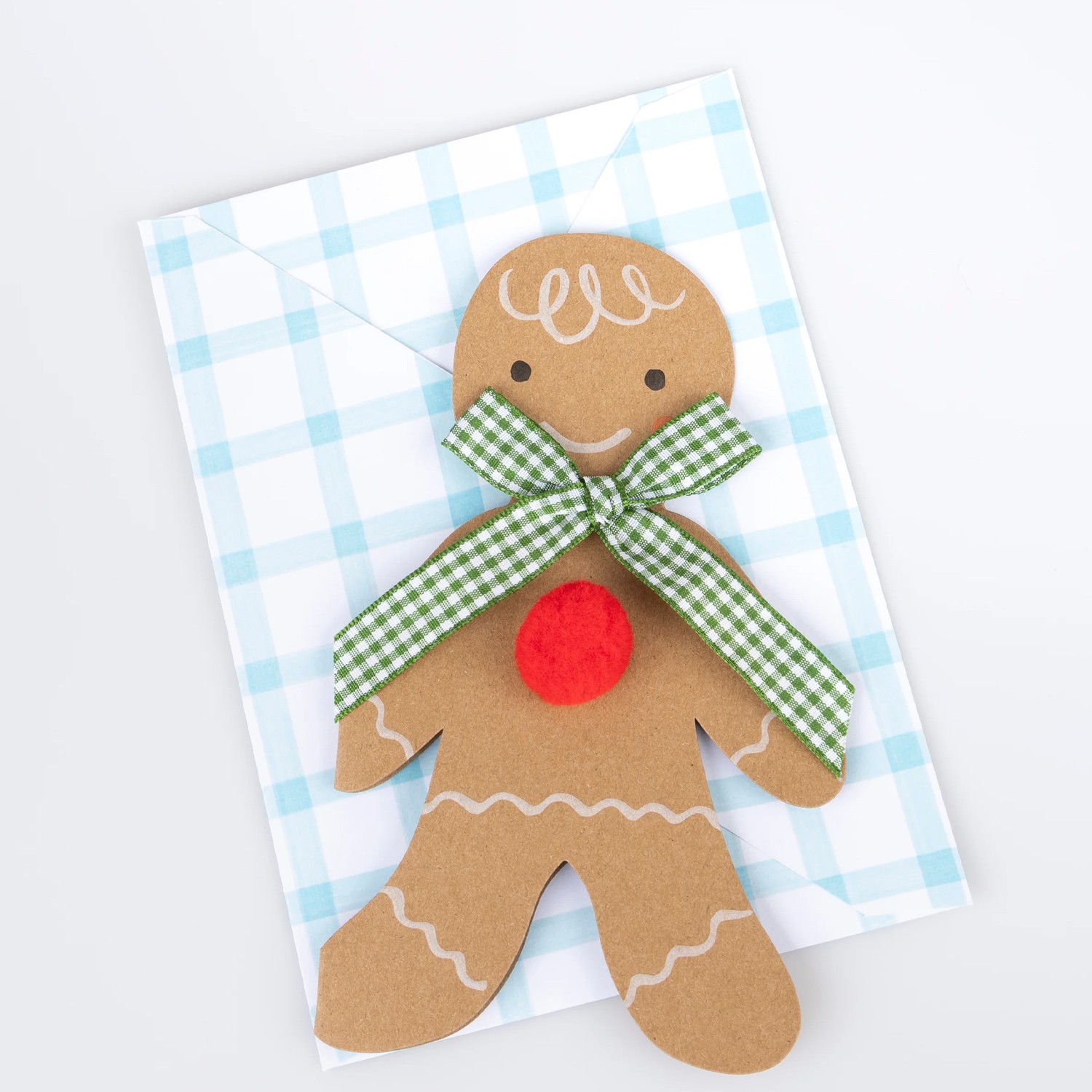 L'omino pan di zenzero non è solo di tendenza, è anche una classica icona festiva. Quindi l' abbiamo usata per creare un grazioso biglietto di auguri di Natale con dettagli 3D. Questo allegro omino, con il suo grazioso fiocco a quadretti e il pompon rosso, è la garanzia che il destinatario si sentirà allegro e radioso. Ideale anche come decorazione da mettere su una mensola del camino.