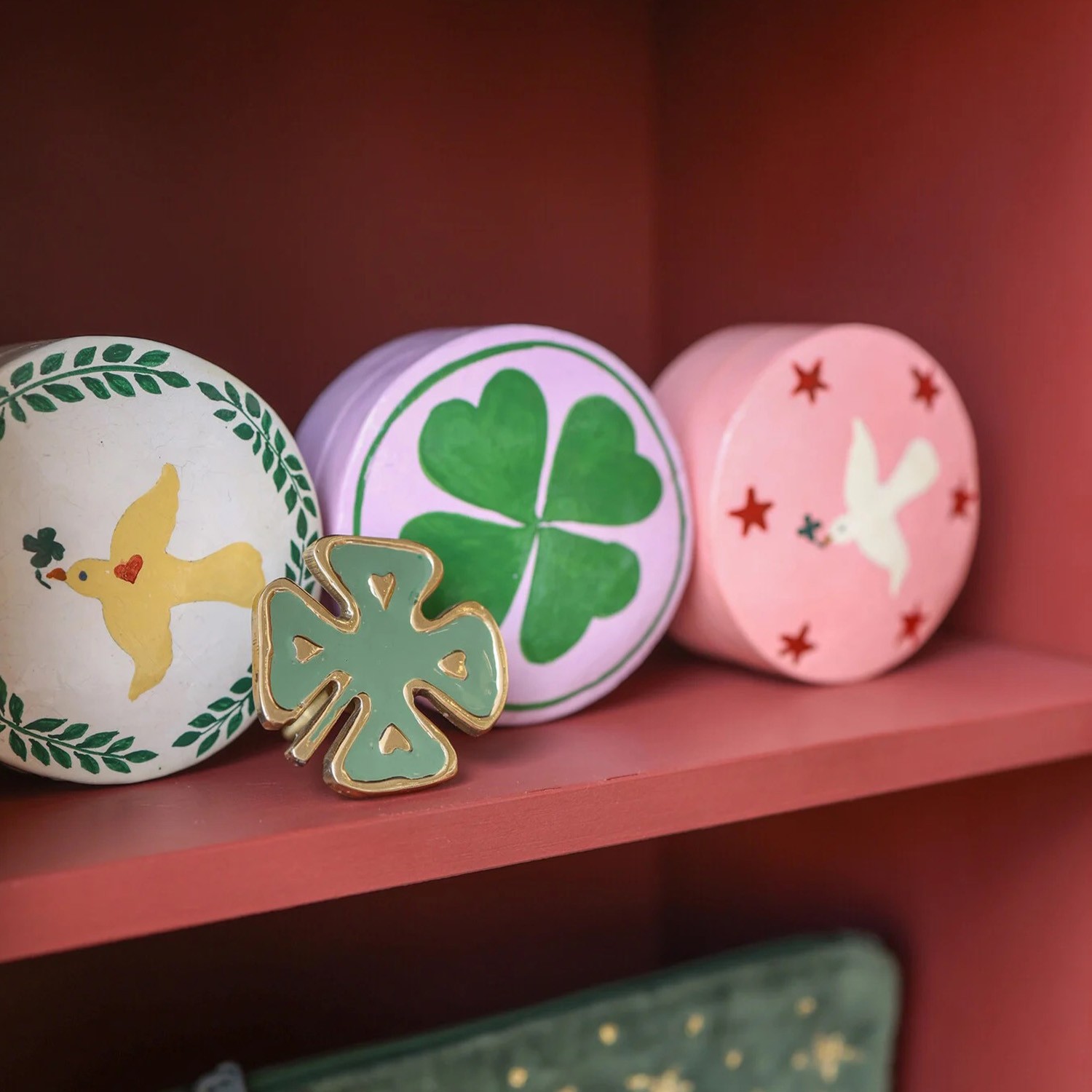 Scatolina rotonda fantasia quadrifoglio