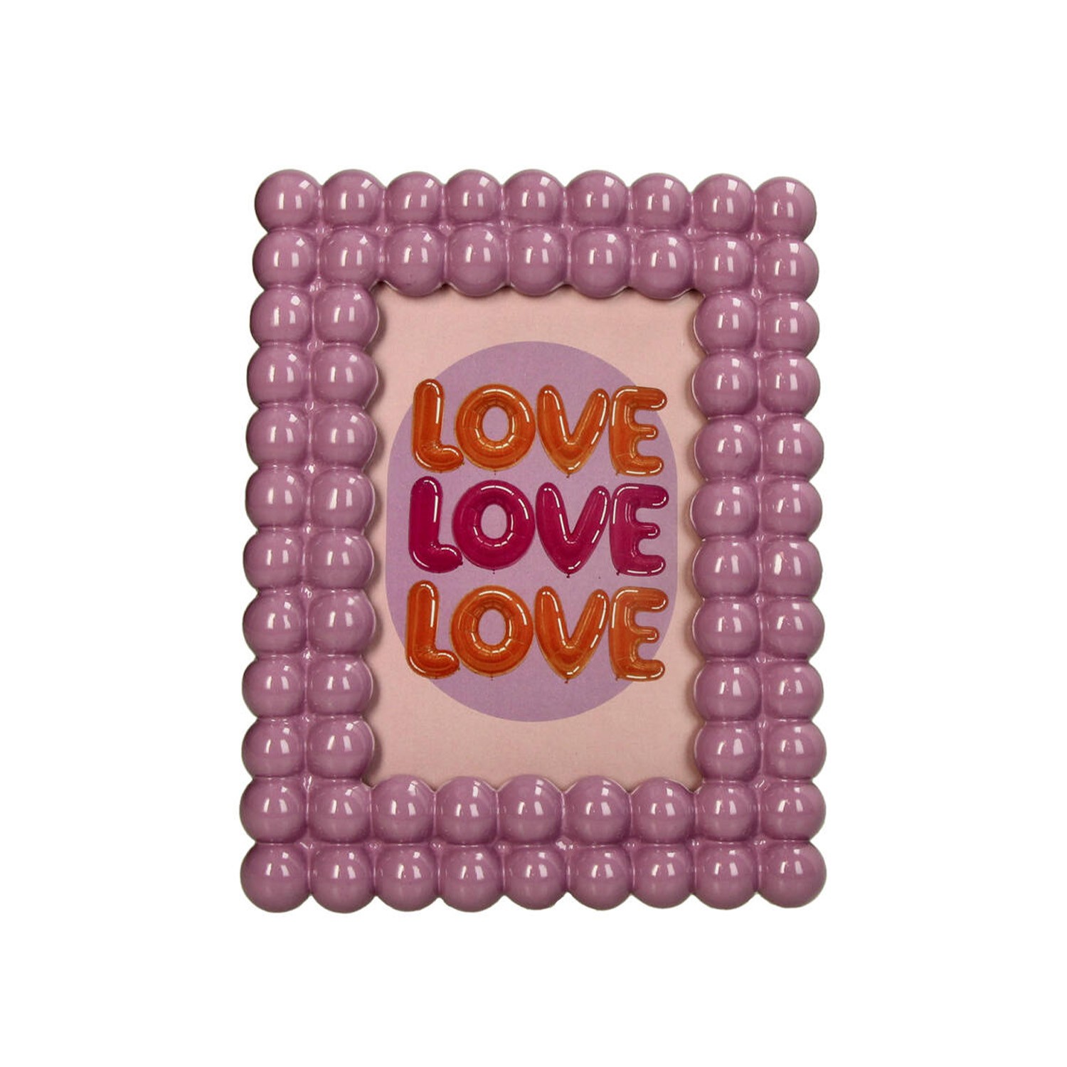 Questa cornice in poliresina non è un semplice supporto, è un vero e proprio statement piece che cattura l'attenzione. Con la sua texture a "bolle" e il colore rosa antico, è l'accessorio ideale per chi ama l'estetica Y2K, lo stile Pop Art e vuole aggiungere un tocco di amore a qualsiasi stanza.