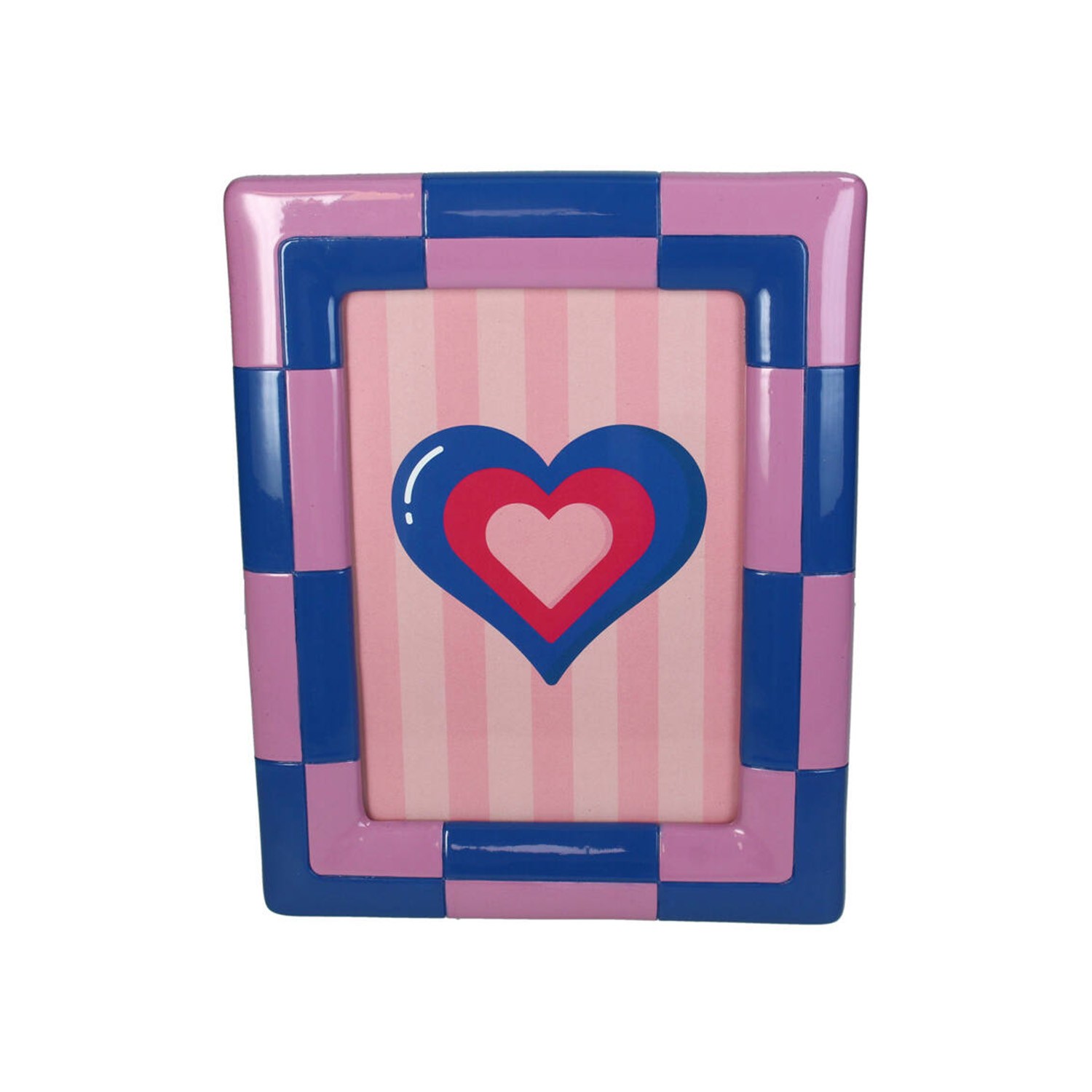 La cornice presenta un bordo esterno con l'iconico motivo a scacchiera nei toni del rosa bubblegum e blu, una combinazione giocosa e super di tendenza.