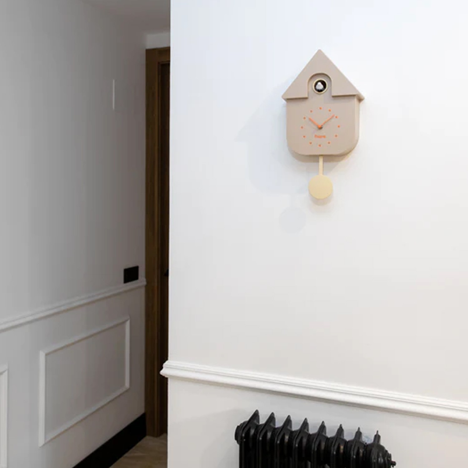 Orologio a cucù dal design moderno e colorato, a forma di casa! Un redesign moderno e minimalista dell'orologio più classico del mondo, di colore beige, perfetto per adattarsi all'estetica delle case più moderne.