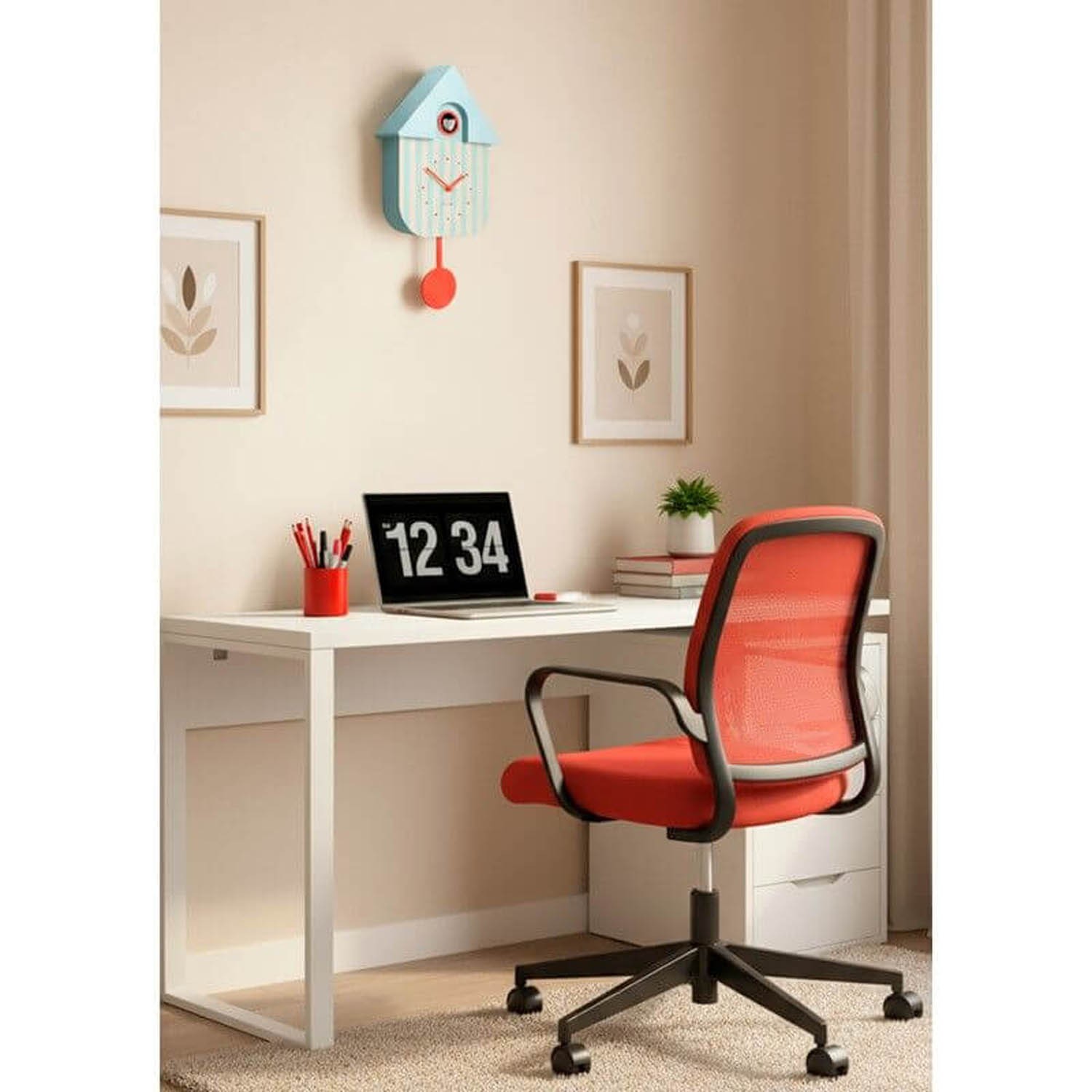 Il pendolo è anche silenzioso, il chè lo rende perfetto per qualsiasi stanza della casa. Quadrante con ore rappresentate da pallini e lancette di colore rosso.