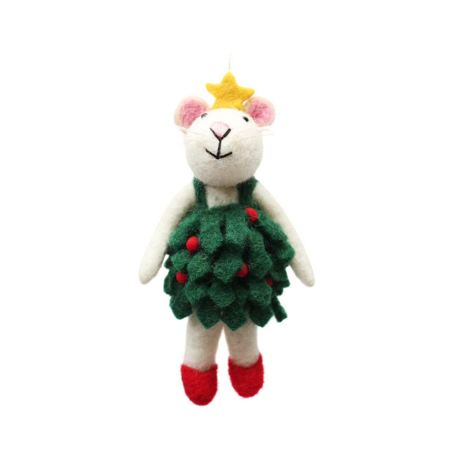 Questa topolina, tutta vestita con il suo vestitino di agrifoglio, è pronta per la festa di Natale! Realizzata a mano in feltro di lana al 100%, senza plastica, perfetta da appendere all’albero natalizio.